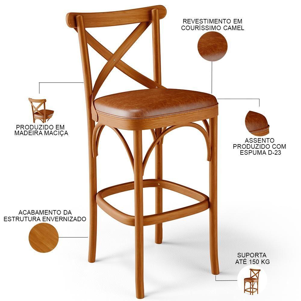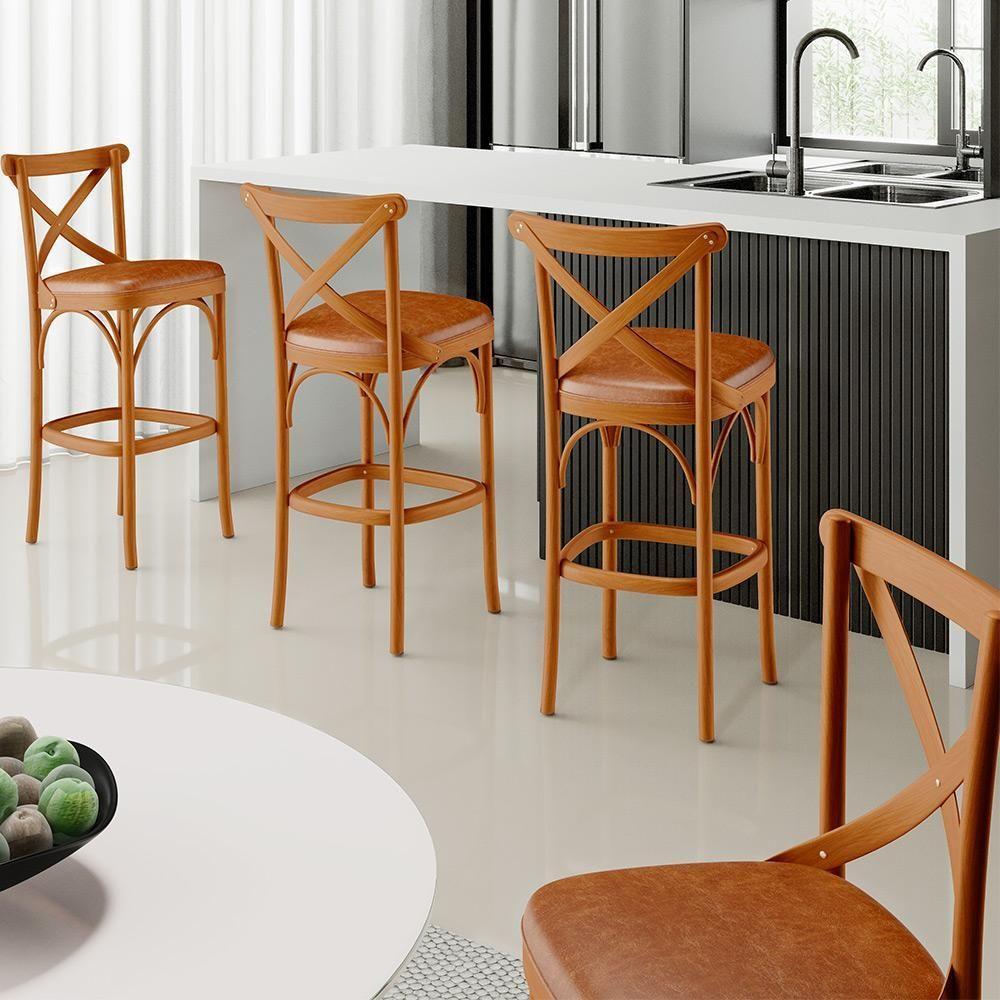 Kit 06 Banquetas Altas Cozinha Bancada Bar Sala Jantar Estofada ávila L02 Couríssimo Camel - Lyam