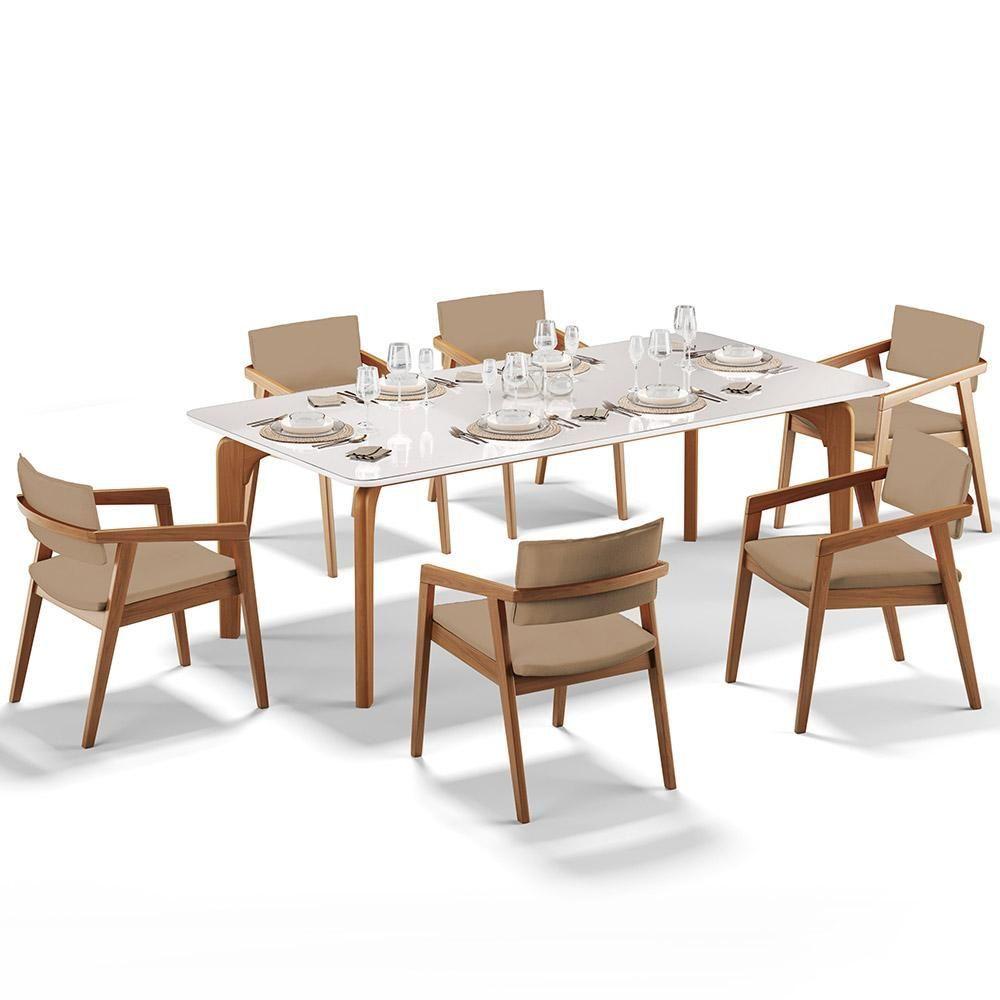 Kit 06 Cadeiras Para Sala De Jantar Estar Living Giorgia B04 Linho Bege Escuro - Lyam DecorO Kit 06 Cadeiras Para Sala de Jantar Estar Living Giorgia B04 Linho Bege Escuro, da Lyam Decor, é perfeito para adicionar um toque moderno à sala de jantar. Com sua estrutura em madeira maciça envernizada, ela traz durabilidade e estilo para o ambiente. O assento e o encosto estofados e revestidos com tecidos alto padrão proporcionam conforto durante as refeições, além de serem fáceis de limpar.Além disso, essa cadeira de madeira conta com um design elegante e contemporâneo, proporcionando destaque pela sua combinação perfeita de funcionalidade e beleza, por isso, seja para pequenas refeições em família ou para receber convidados, essa cadeira de jantar estofada é a escolha ideal. Ah, já a versatilidade fica por conta do fato de conseguir aproveitá-la em diversos ambientes, desde a sala de jantar, sala de estar, escritório e até mesmo recepção. Demais, não é mesmo?! Então, não perca mais tempo, transforme sua sala de jantar em um espaço sofisticado e acolhedor com a Cadeira Giorgia. Adquira a sua agora mesmo e desfrute de momentos memoráveis ao redor da mesa. Dimensões do produto (L x A x P) 56 cm x 80 cm x 65 cm Medidas internas Altura do chão à base: 35,5 cm Altura do chão ao assento: 45 cm Largura do assento: 50 cm Profundidade do assento: 55 cm Altura do encosto: 25 cm Altura total do encosto: 80 cm Largura do encosto: 50 cm Altura do início da braça: 63 cm Peso aproximado: 8 kg Características: Estrutura em madeira de reflorestamento de eucalipto tratado. Revestimento em Linho na cor Bege Escuro. Assento e encosto com espuma D-28. Peso máximo suportado por cadeira até 130 kg. Estrutura de Madeira na cor Nozes. Produto entregue montado. - Por se tratar de estofado as medidas podem ter uma pequena variação de até 3 cm. - A tonalidade do produto real poderá ter ligeira variação devido o lote de tecidos. - A limpeza deve ser feita com pano levemente umedecido em água limpa, sem esfregar, não utilizar produtos abrasivos, desengordurantes, álcool ou solvente. Observações importantes: - Produto para uso residencial em ambiente interno, não devendo ficar exposto diretamente ao sol, calor e umidade excessivos. - Pode haver alguma diferença de tonalidade entre a imagem e o produto real, por conta do tratamento de imagens e a calibração de cores do seu monitor. - As imagens são meramente ilustrativas, não acompanham objetos de decoração e eletrônicos. - Ao receber a mercadoria, o cliente deve verificar as condições da embalagem, caso haja alguma não assine o de . - Montagem, desmontagem e outras instalações serão de responsabilidade do cliente. Não nos responsabilizamos, no ato da , por subir escadas/elevadores ou pelo por guincho em apartamentos. Eventuais despesas são de responsabilidade do comprador. - Confira as dimensões do produto e certifique-se de que passará normalmente por supostos elevadores, portas, escadas e/ou corredores de sua residência. Altura da cadeira: 80 cm | Altura do assento a partir do solo: 45 cm | Color: Bege Escuro | ColorFamily: Bege Escuro | ColorSimple: Bege Escuro | ColorSupplier: Bege Escuro | Cor: Bege Escuro | Cor da estrutura da cadeira: Nozes | Cor do assento: Bege Escuro | Cor do estofamento: Bege Escuro | Desenho do tecido: Liso | É cadeira de balanço: Não | É dobrável: Não | É empilhável: Não | Espessura do assento: na | Fabricante: Lyam Decor | Firmeza: Firme | Largura da cadeira: 56 cm | Largura do assento: 50 cm | Material: Madeira, Linho | Material do estofamento: Bouclê | MaterialFamily: Madeira | Model: Giorgia | OriginCountry: | OriginState: Paraná | Peso máximo suportado: 130 Kg | ProductContents: 06 Cadeiras | ProductHeight: 80 cm | ProductInstructions: Produto para uso em ambiente interno, nao devendo ficar exposto ao sol, calor e umidade excessivos. | ProductLength: 65 cm | ProductWarranty: 90 dias após o do produto | ProductWeight: 8 kg | ProductWidth: 56 cm | Profundidade da cadeira: 65 cm | Profundidade do assento: 55 cm | Requer montagem: Não | SizeDescription: Altura: 80 cm x Largura: 56 cm x Profundidade: 65 cm | SupplierSimpleName: Kit 06 Cadeiras Para Sala de Jantar Estar Living Giorgia B04 Linho Bege Escuro - Lyam Decor | Tempo de montagem: na