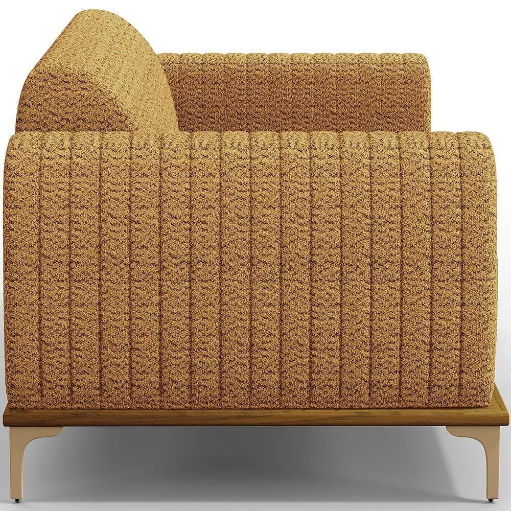Kit Sofá 3 Lugares 210cm Com Poltrona Molino Base Castanho Pés D'ouro D02 Prime Bouclê Mostarda Pb-03 - Lyam Decor