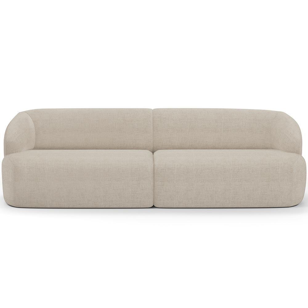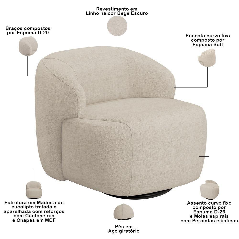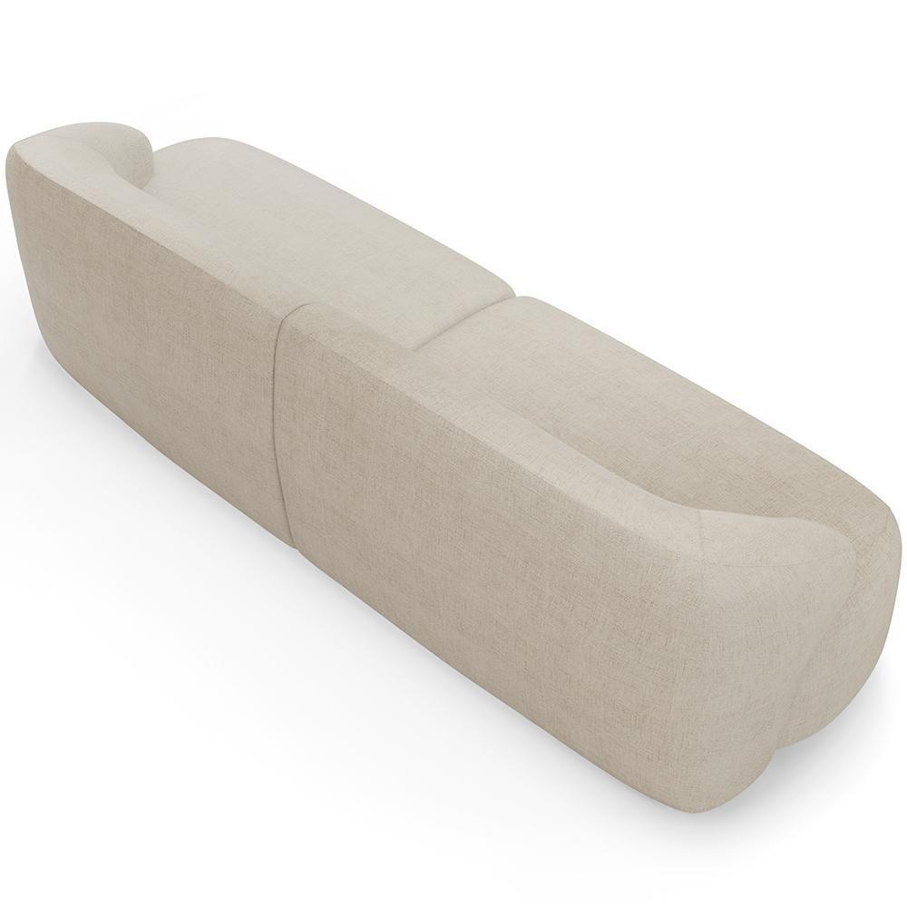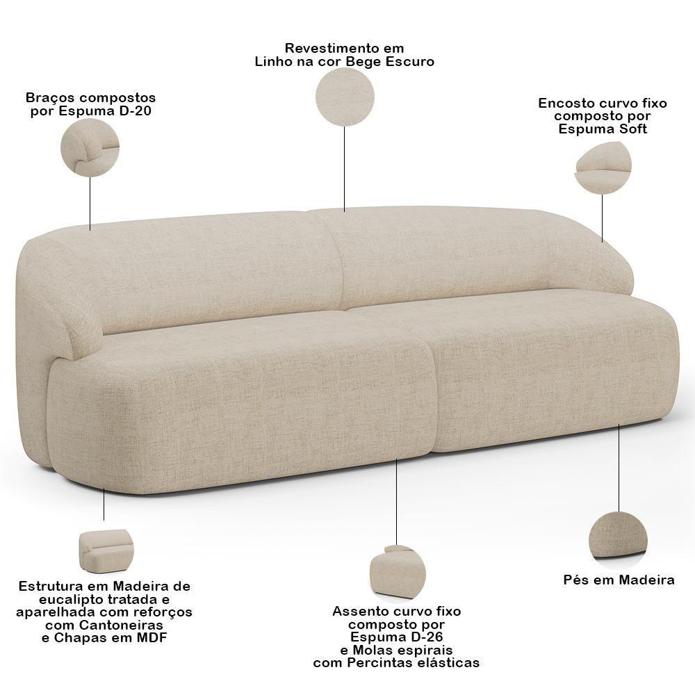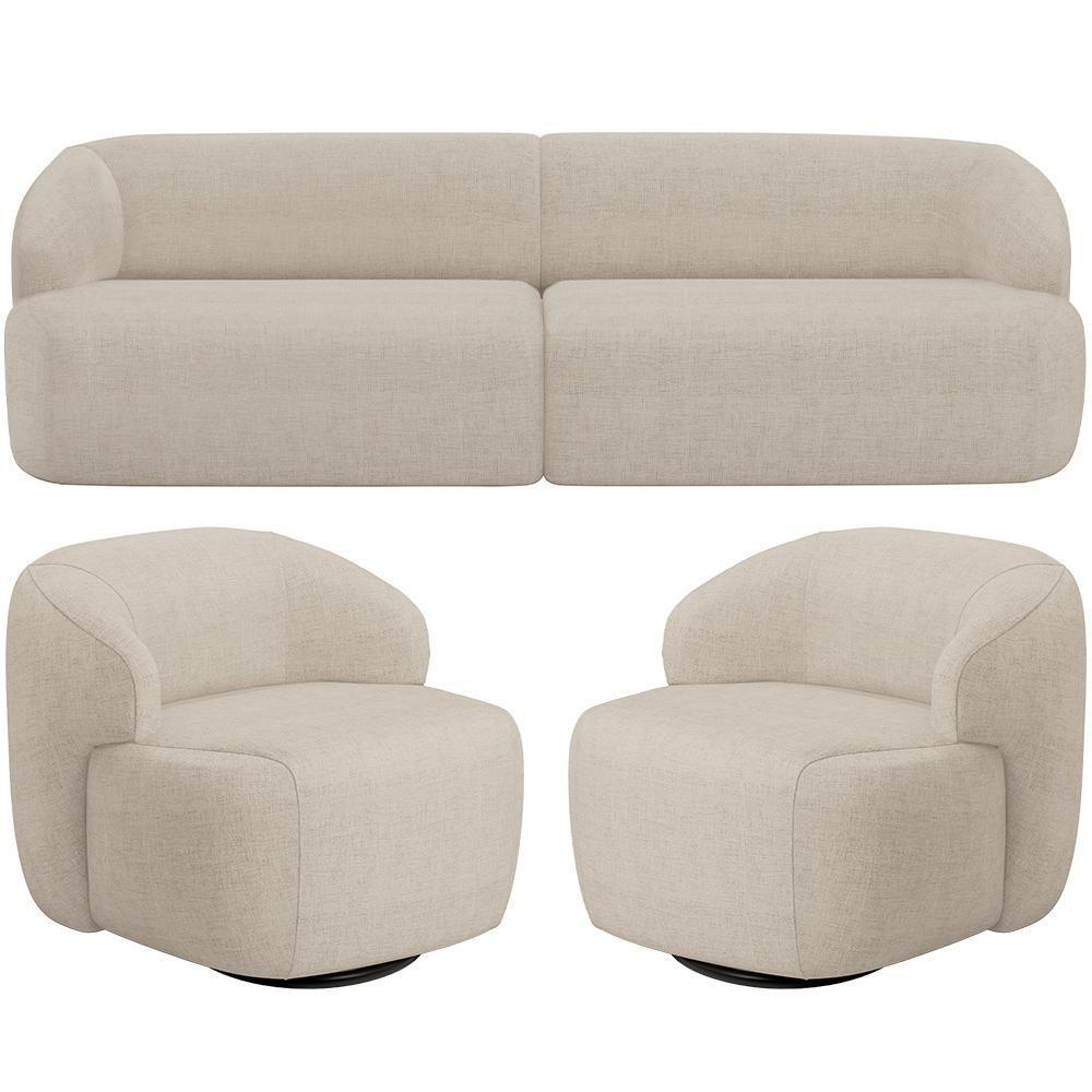 Sofá 3 Lugares Curvo Orgânico Com 02 Poltronas Living 220cm Barolo L06 Linho Bege Escuro
