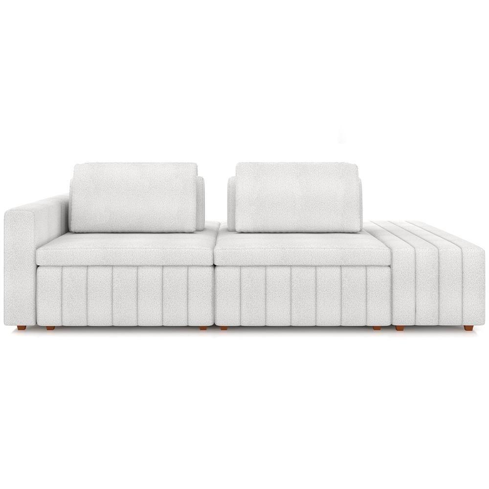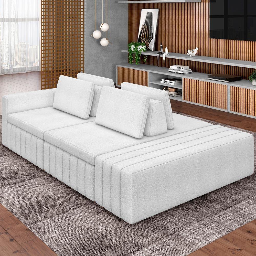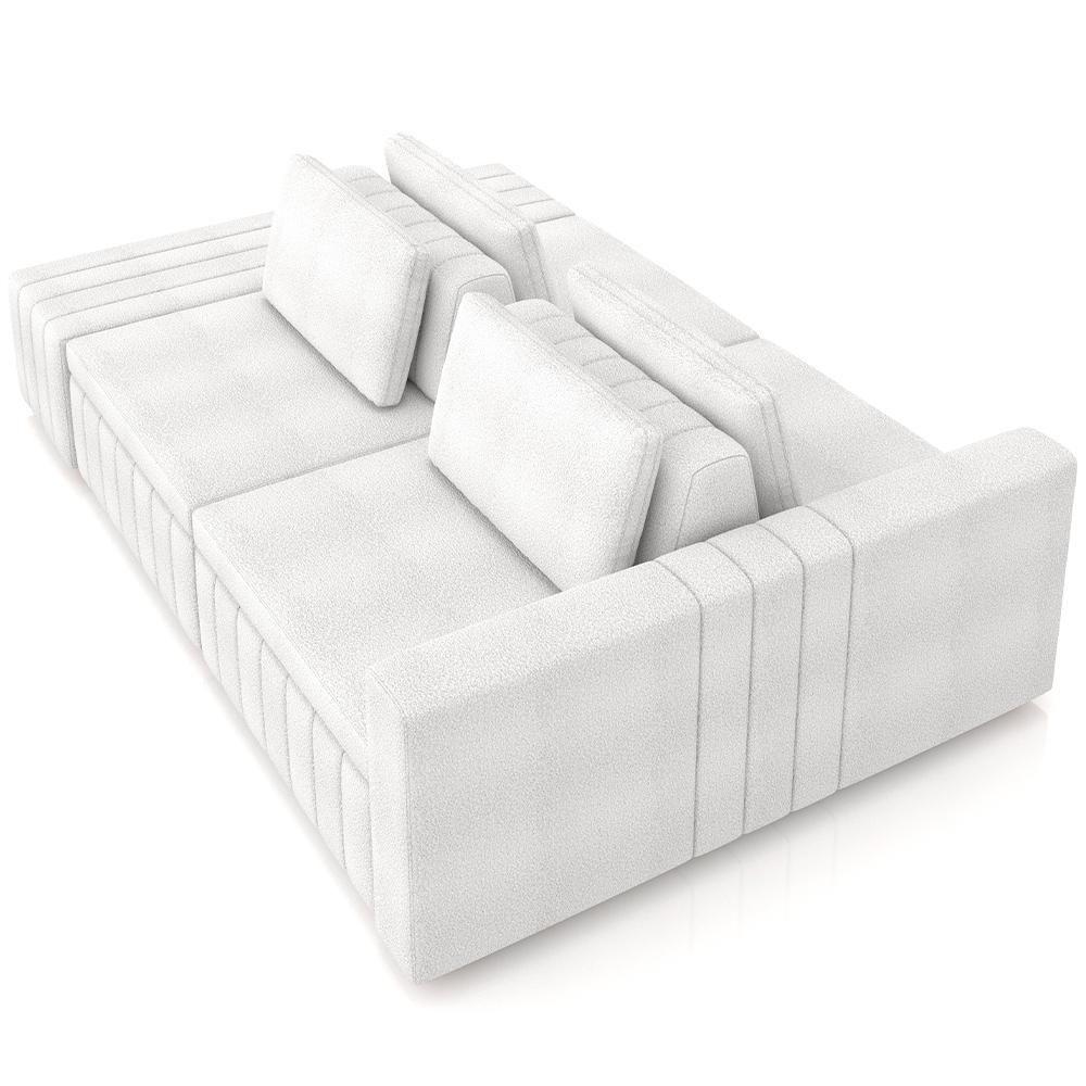 Sofá Ilha Com Puff Living 285cm Amber M03 Bouclê Branco