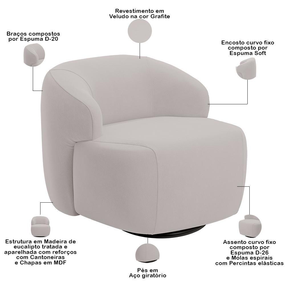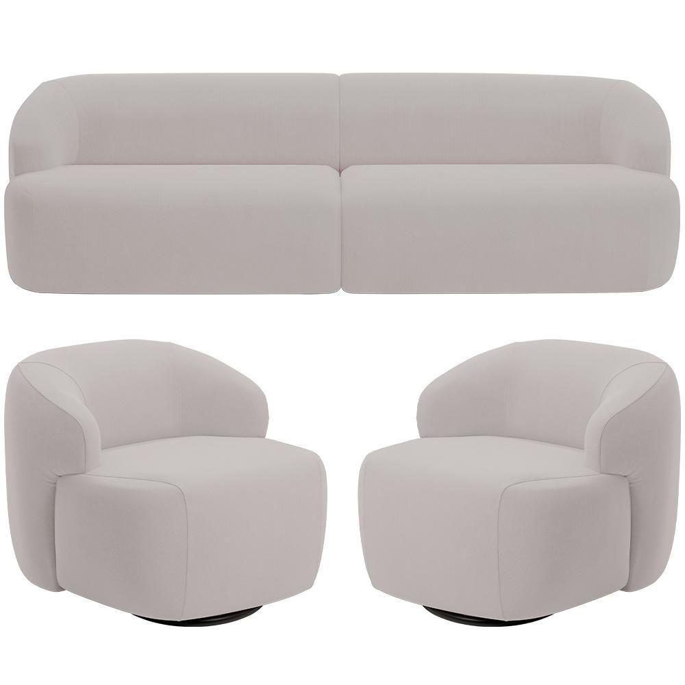 Sofá 3 Lugares Curvo Orgânico Com 02 Poltronas Living 220cm Barolo L06 Veludo Grafite