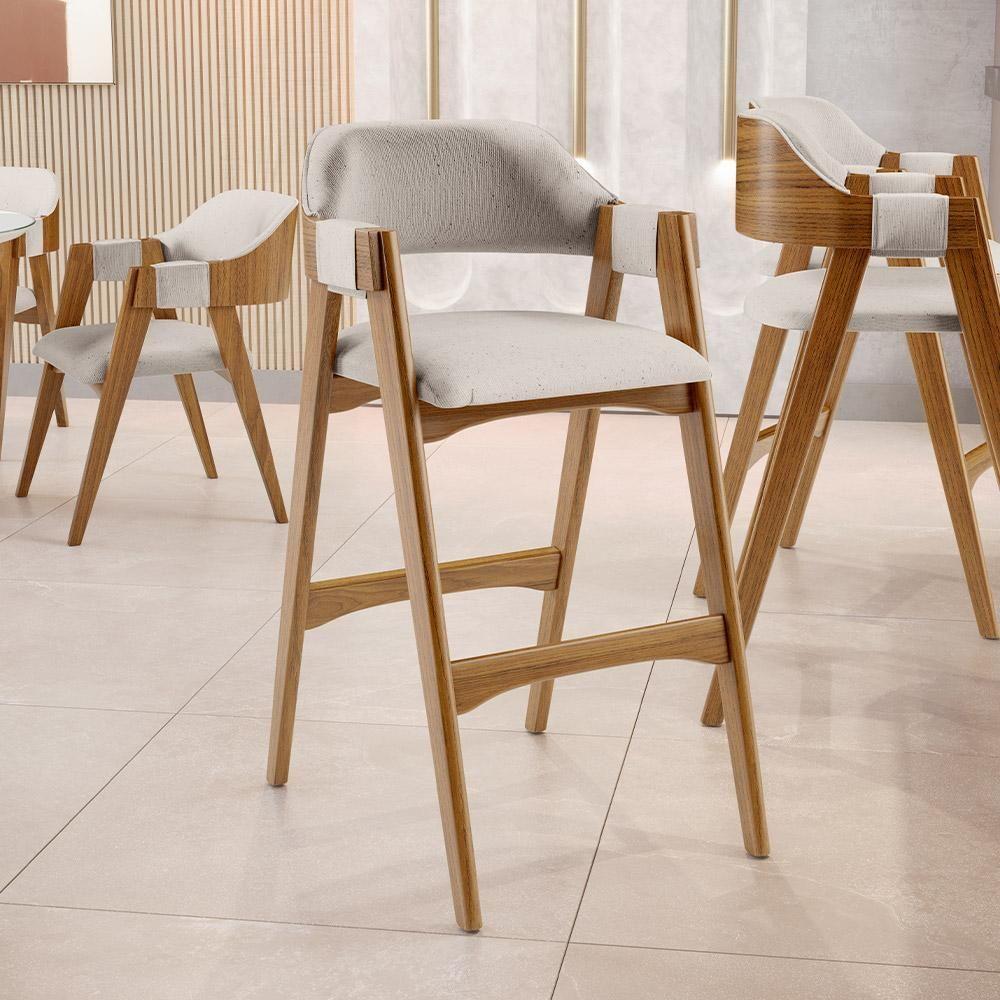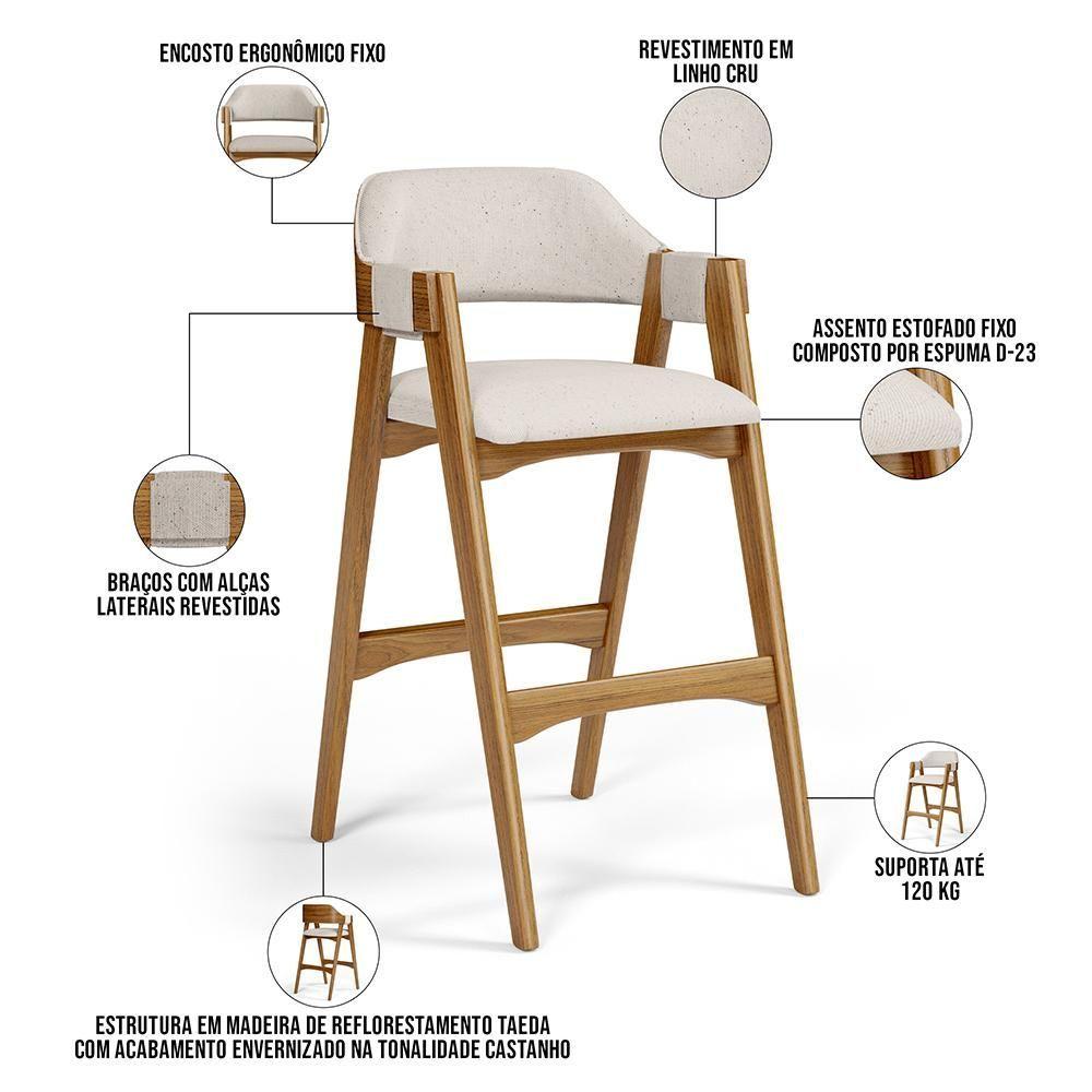 Kit 06 Banquetas Altas Suran L02 Linho Cru