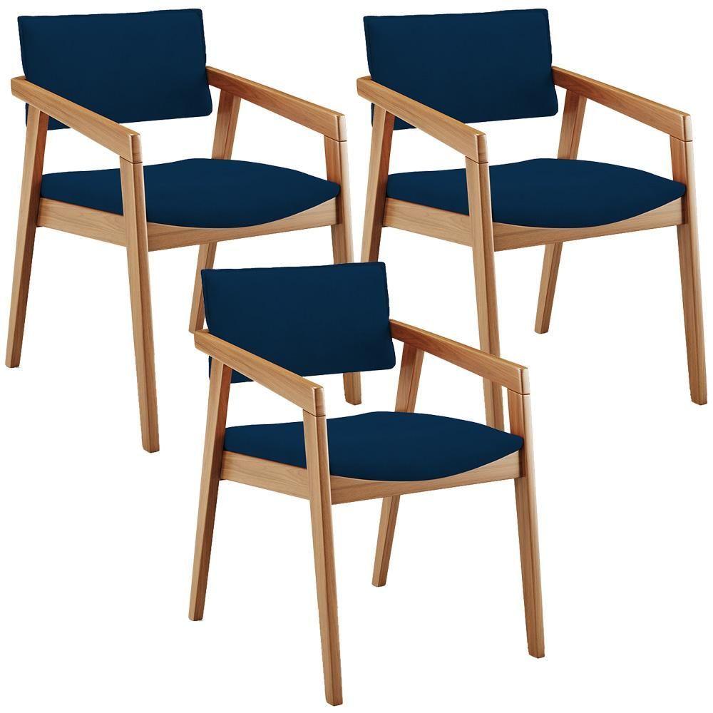 Kit 03 Cadeiras De Jantar Estar Living Giorgia L02 Suede Azul Marinho