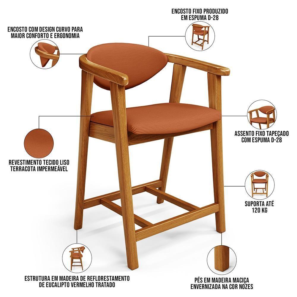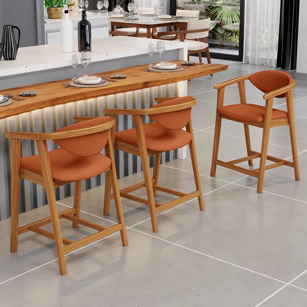 Kit 06 Banquetas Baixa Cozinha Bancada Cecília L02 Tecido Terracota