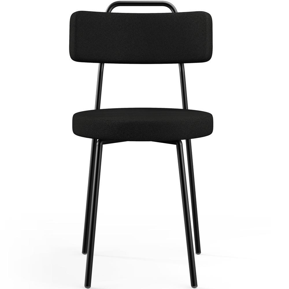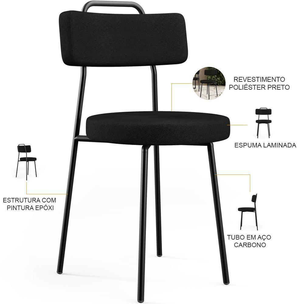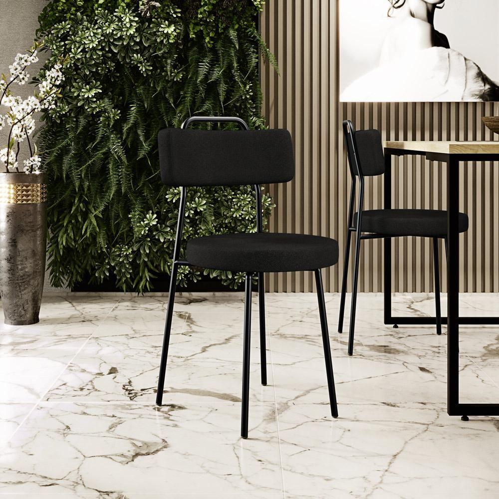 Kit 06 Cadeiras Decorativas Estofada Para Sala De Jantar Barcelona L02 Poliéster Preto