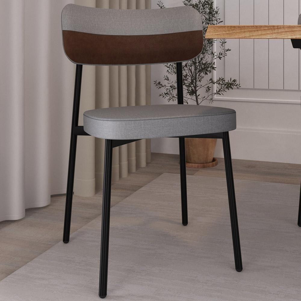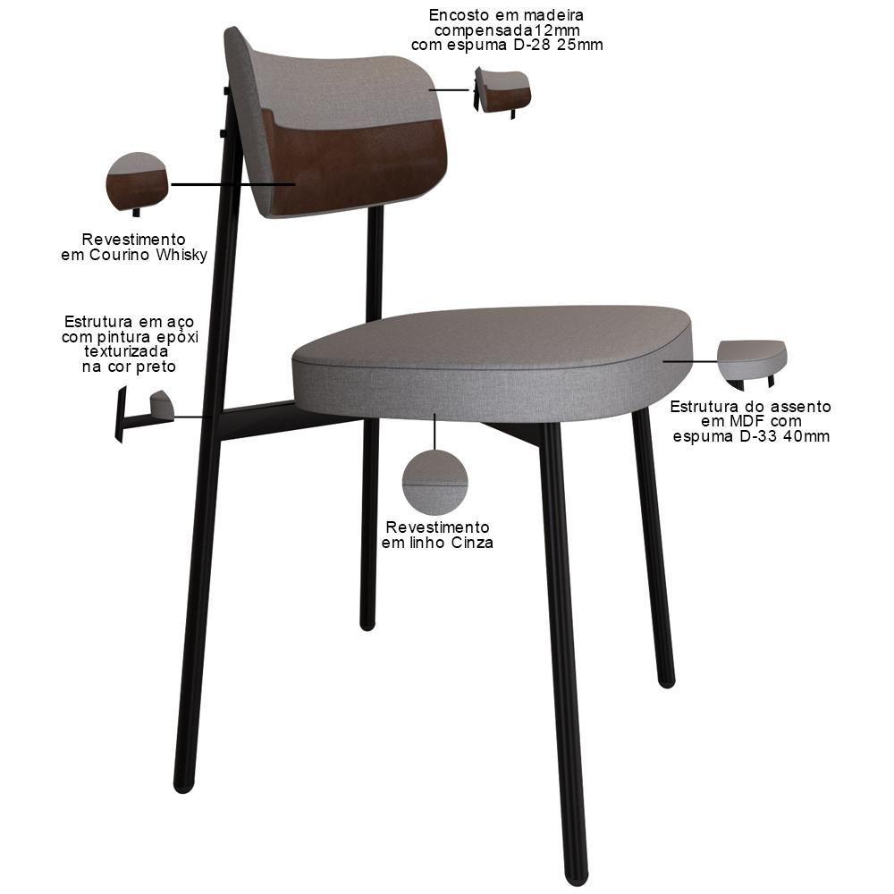 Cadeira Estofada Para Sala De Jantar Astrid Preto C01 Linho Cinza Courino Whisky - Lyam Decor
