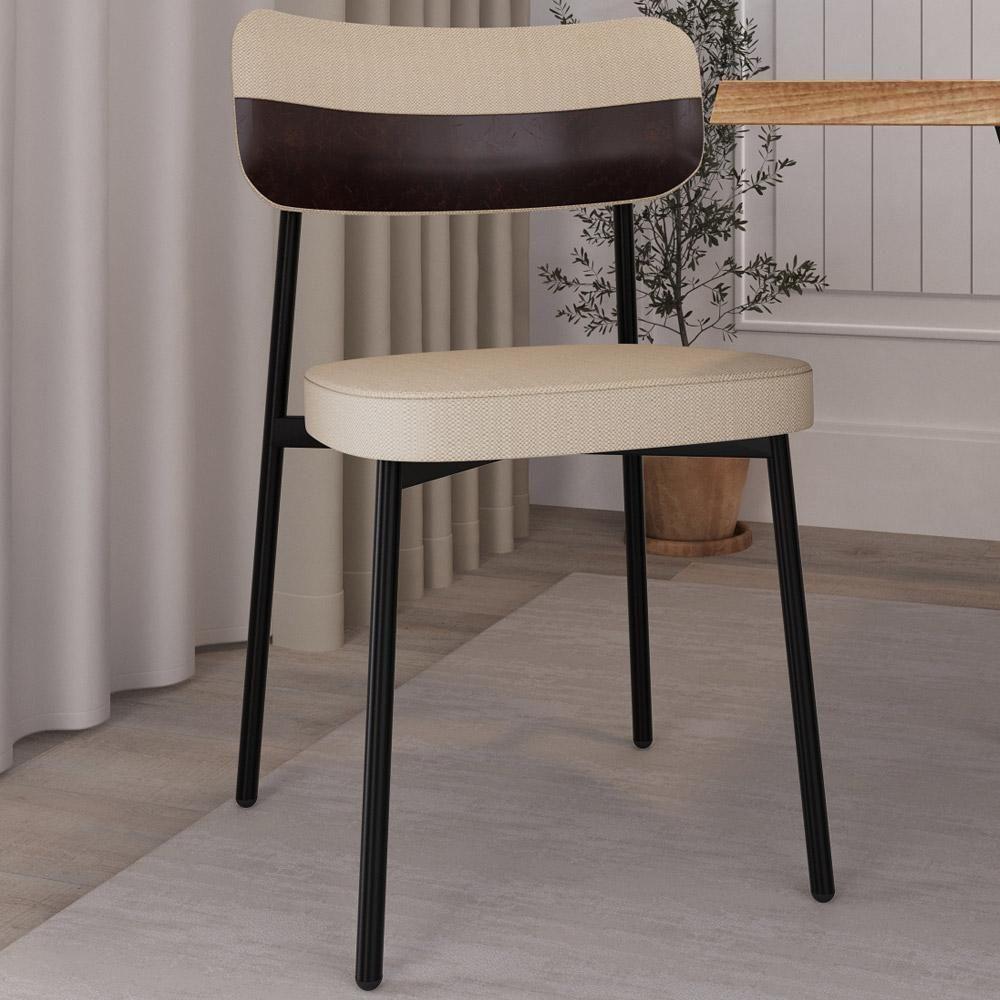 Cadeira Estofada Para Sala De Jantar Astrid Preto C01 Linho Areia Courino Café - Lyam Decor
