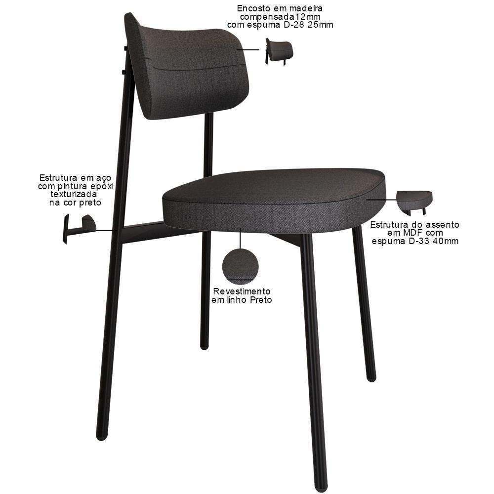 Cadeira Estofada Para Sala De Jantar Astrid Preto C01 Linho Preto - Lyam Decor