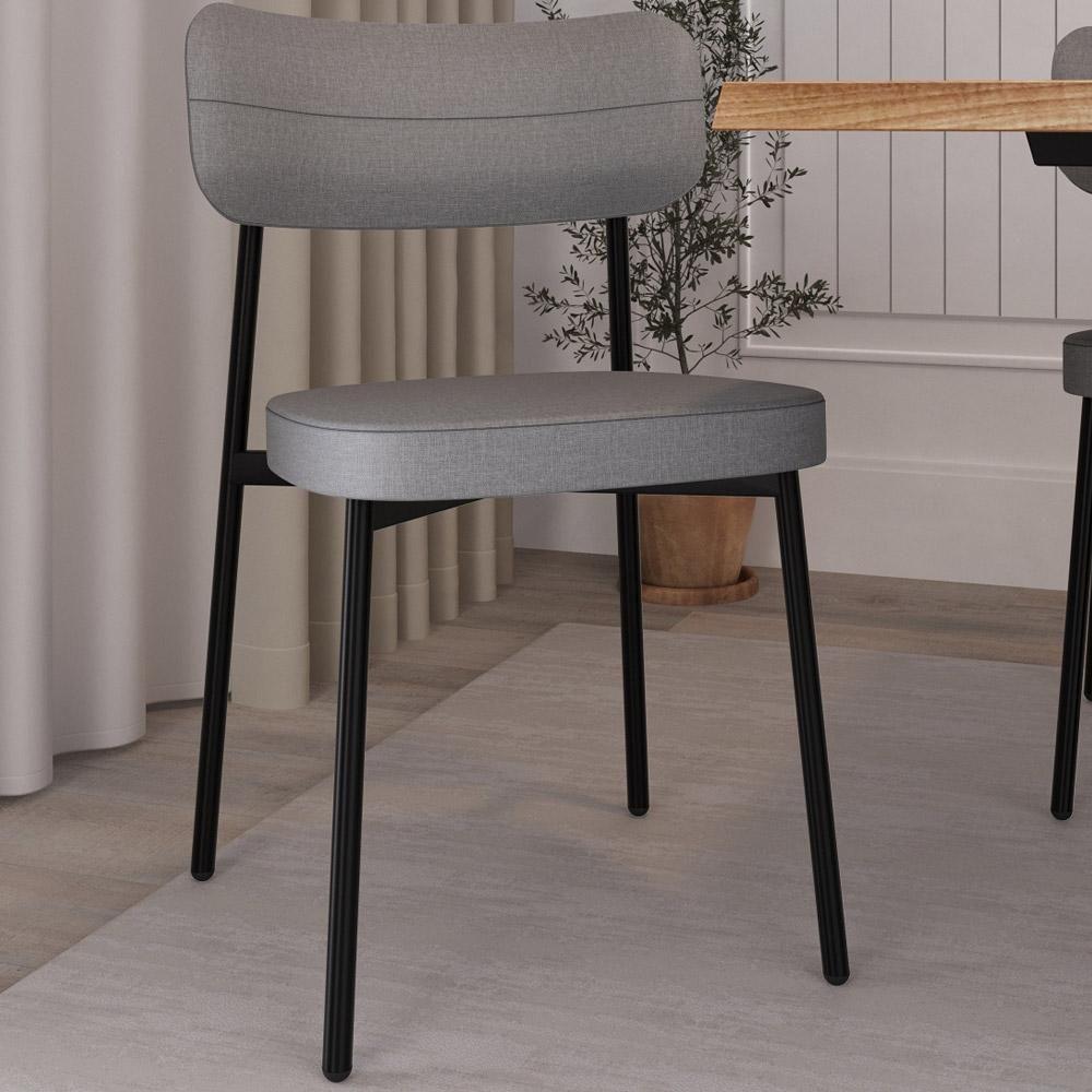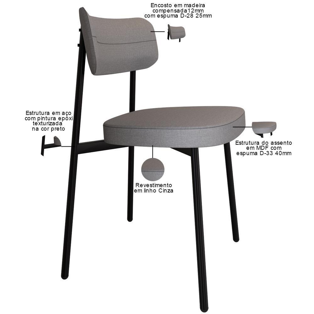 Kit 08 Cadeiras Estofada Para Sala De Jantar Astrid Preto C01 Linho Cinza - Lyam Decor