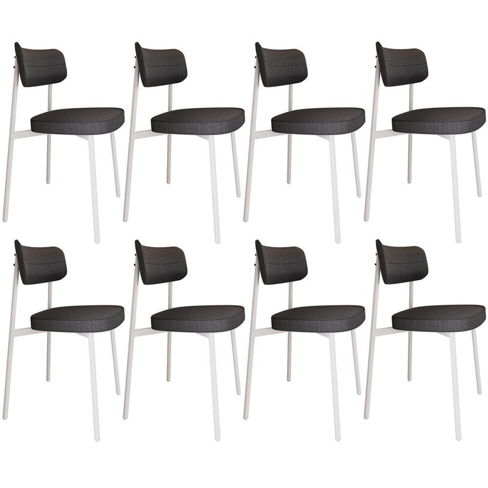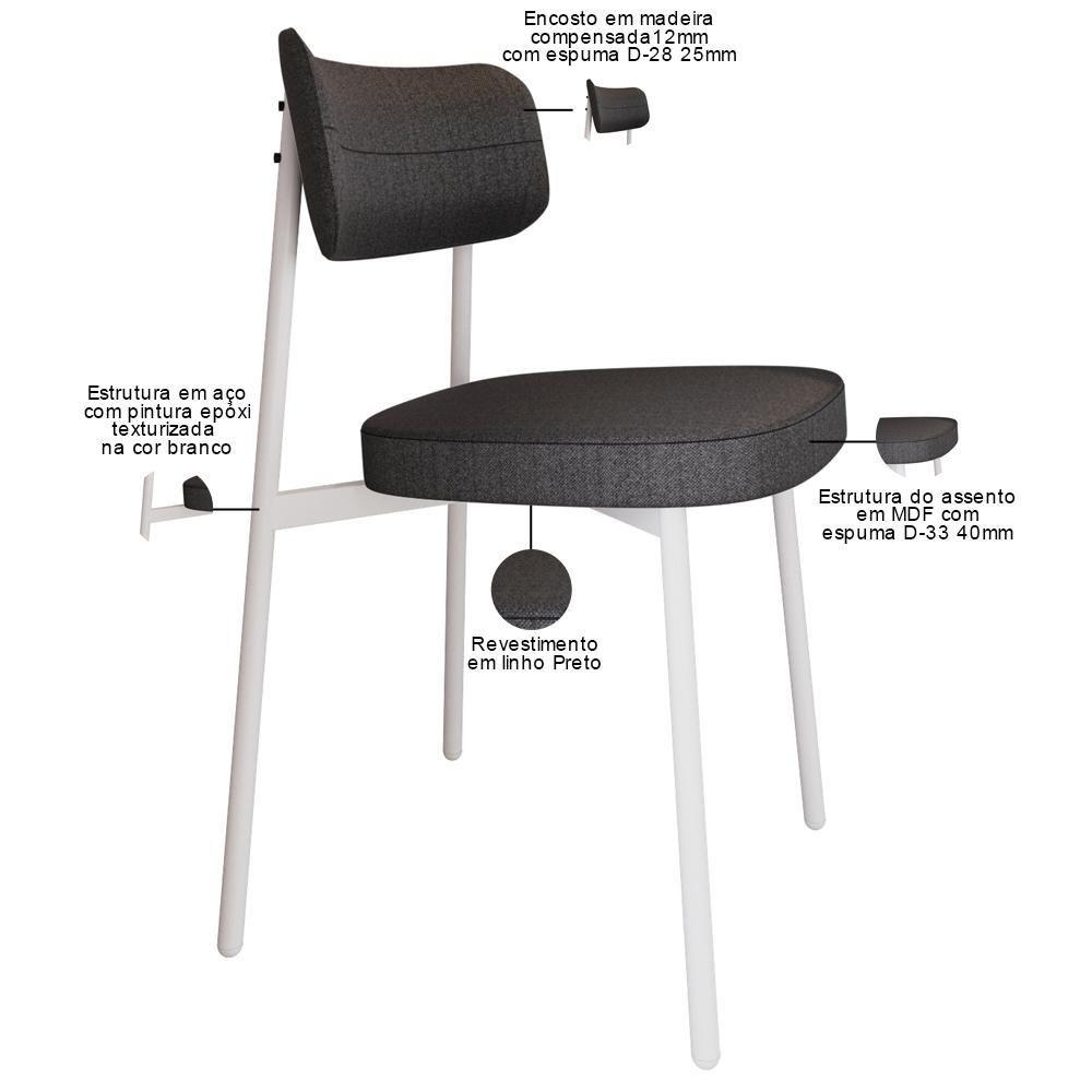 Kit 08 Cadeiras Estofada Para Sala De Jantar Astrid Branco C01 Linho Preto - Lyam Decor