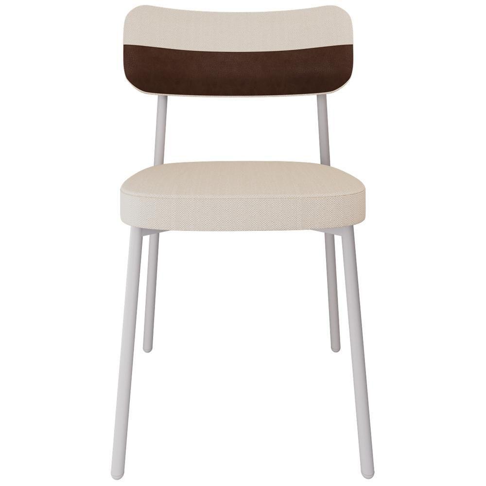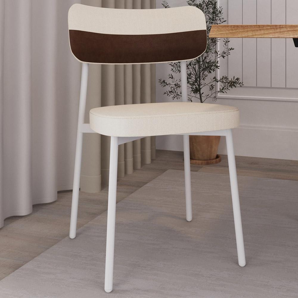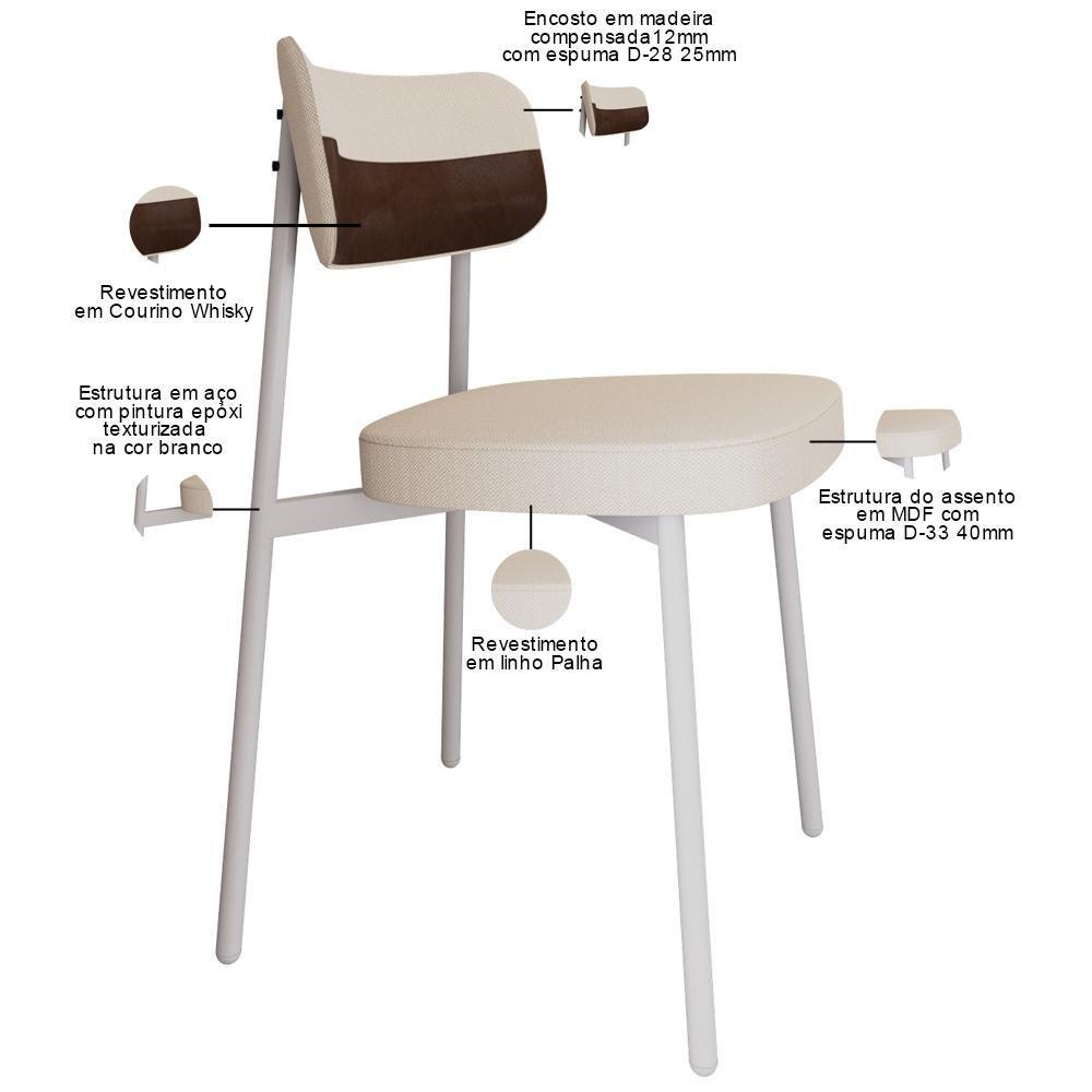 Kit 08 Cadeiras Estofada Para Sala De Jantar Astrid Branco C01 Linho Palha Courino Whisky - Lyam Decor