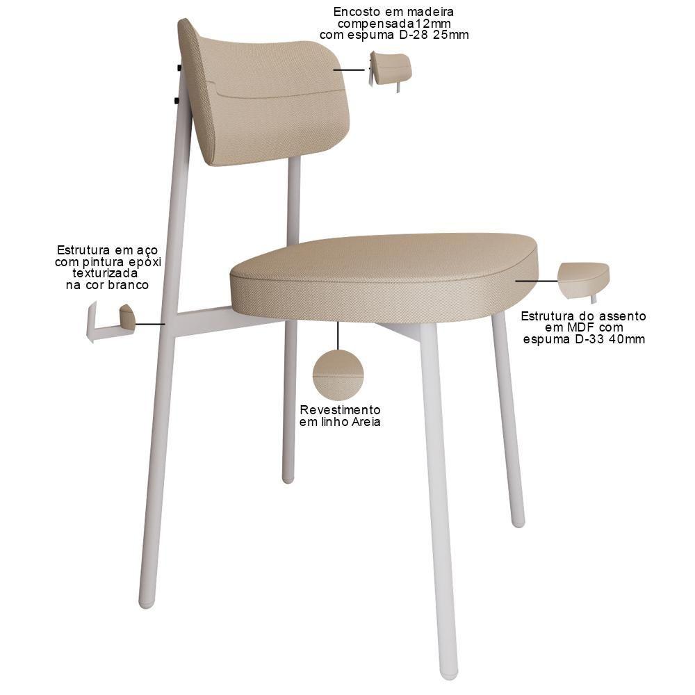 Kit 08 Cadeiras Estofada Para Sala De Jantar Astrid Branco C01 Linho Areia - Lyam DecorTransforme sua sala de jantar com a nossa Cadeira Astrid! Desfrute de momentos inesquecíveis ao redor da mesa com a cadeira Astrid, projetada para oferecer o máximo de conforto e elegância na sua sala de jantar ou cozinha. Com encosto curvo, ofertando maior conforto no uso, e assento estofado com uma espuma de altíssima qualidade, ela proporciona suporte ideal para longas refeições e conversas agradáveis. Além de combinar durabilidade e estilo, ela é a escolha perfeita para quem busca sofisticação e bem-estar em cada detalhe. Aproveite!Dimensões da Cadeira (L x A x P) 44,2 x 83,8 x 44,7 cmAltura do chão ao assento: 48,2 cm Largura do encosto: 50 cm Altura do encosto: 21 cmCaracterísticas: Estrutura fixa em aço carbono com pintura epóxi na cor branco. Encosto produzido em madeira compensada com espuma D-28, 25mm. Assento produzido em MDF com espuma D-33, 40mm. Revestimento em Linho Areia. Peso suportado de até 120 kg. Produto entregue desmontado, acompanha manual de montagem.- Por se tratar de estofado as medidas podem ter uma pequena variação de até 3 cm. - A tonalidade do produto real poderá ter ligeira variação devido o lote de tecidos. - A limpeza deve ser feita com pano levemente umedecido em água limpa, sem esfregar, não utilizar produtos abrasivos, desengordurantes, álcool ou solvente.Observações importantes: - Produto para uso residencial em ambiente interno, não devendo ficar exposto diretamente ao sol, calor e umidade excessivos. - Pode haver alguma diferença de tonalidade entre a imagem e o produto real, por conta do tratamento de imagens e a calibração de cores do seu monitor. - As imagens são meramente ilustrativas, não acompanham objetos de decoração e eletrônicos. - Ao receber a mercadoria, o cliente deve verificar as condições da embalagem, caso haja alguma não assine o de . - Montagem, desmontagem e outras instalações serão de responsabilidade do cliente. Não nos responsabilizamos, no ato da , por subir escadas/elevadores ou pelo por guincho em apartamentos. Eventuais despesas são de responsabilidade do comprador. - Confira as dimensões do produto e certifique-se de que passará normalmente por supostos elevadores, portas, escadas e/ou corredores de sua residência. Altura da cadeira: 40 cm | Altura do assento a partir do solo: 48 cm | Color: Bege | ColorFamily: Bege | ColorSimple: Bege | ColorSupplier: Areia | Cor: Areia | Cor da estrutura da cadeira: Branco | Cor do assento: Areia | Cor do estofamento: Areia | Desenho do tecido: Linho | É cadeira de balanço: Não | É dobrável: Não | É empilhável: Não | Espessura do assento: na | Fabricante: Lyam Decor | Firmeza: Firme | Largura da cadeira: 65 cm | Largura do assento: 65 cm | Material: Tecido, Aço | Material do estofamento: Linho | MaterialFamily: Tecido, Aço | Model: Astrid | OriginCountry: | OriginState: PR | Peso máximo suportado: 120 kg | ProductContents: 08 Cadeiras | ProductHeight: 40 cm | ProductInstructions: Produto para uso em ambiente interno, nao devendo ficar exposto ao sol, calor e umidade excessivos. | ProductLength: 81 cm | ProductWarranty: 90 dias após o do produto | ProductWeight: 35,9 kg | ProductWidth: 65 cm | Profundidade da cadeira: 81 cm | Profundidade do assento: 44 cm | Requer montagem: Não | SizeDescription: Altura: 40 cm x Largura: 65 cm x Profundidade: 81 cm | SupplierSimpleName: Kit 08 Cadeiras Estofada Para Sala de Jantar Astrid Branco C01 Linho Areia - Lyam Decor | Tempo de montagem: na