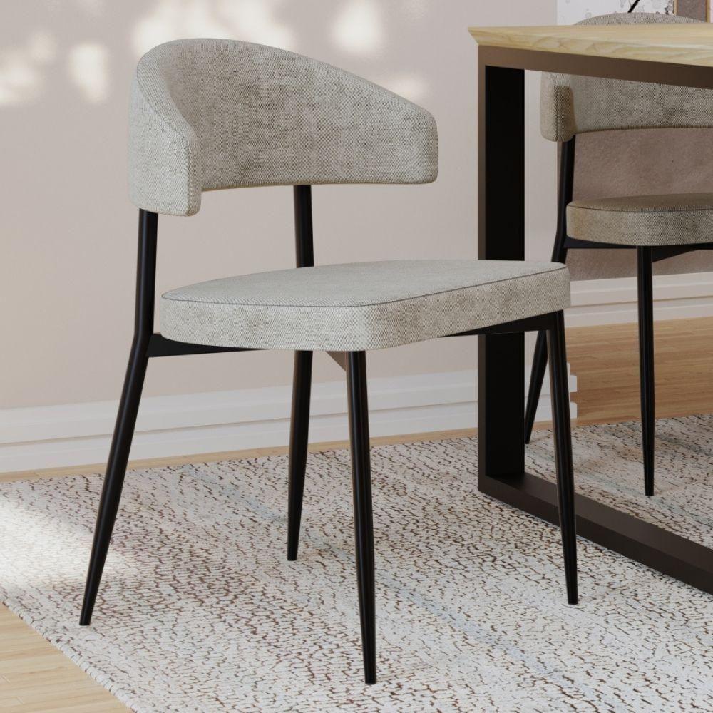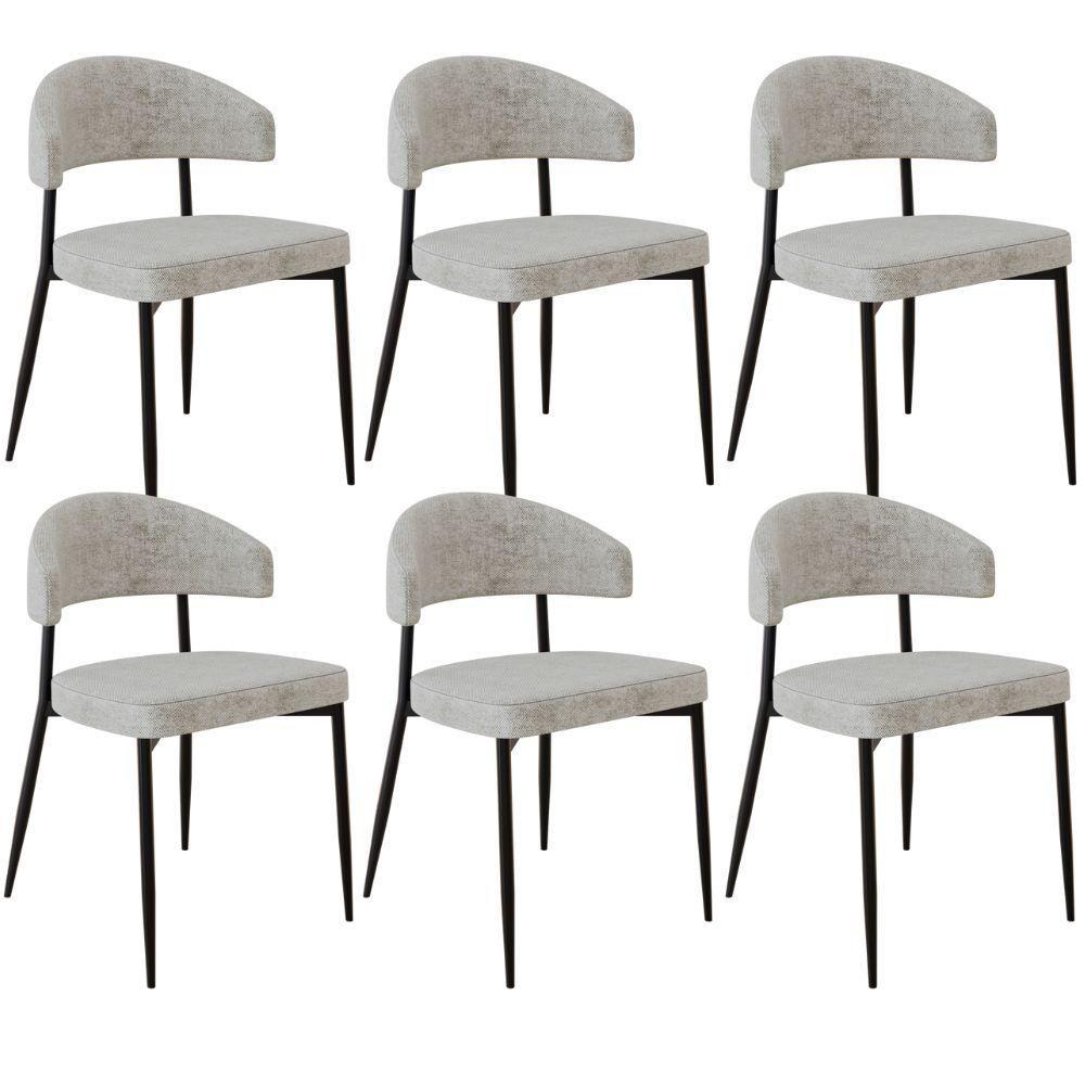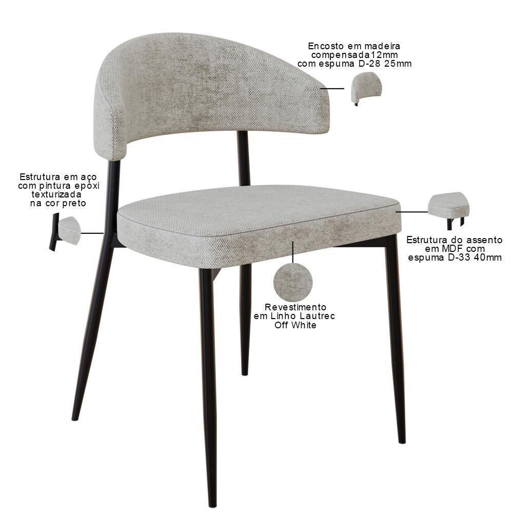 Kit 06 Cadeiras Estofada Para Sala De Jantar Serena Preto C01 Linho Lautrec Off White - Lyam Decor