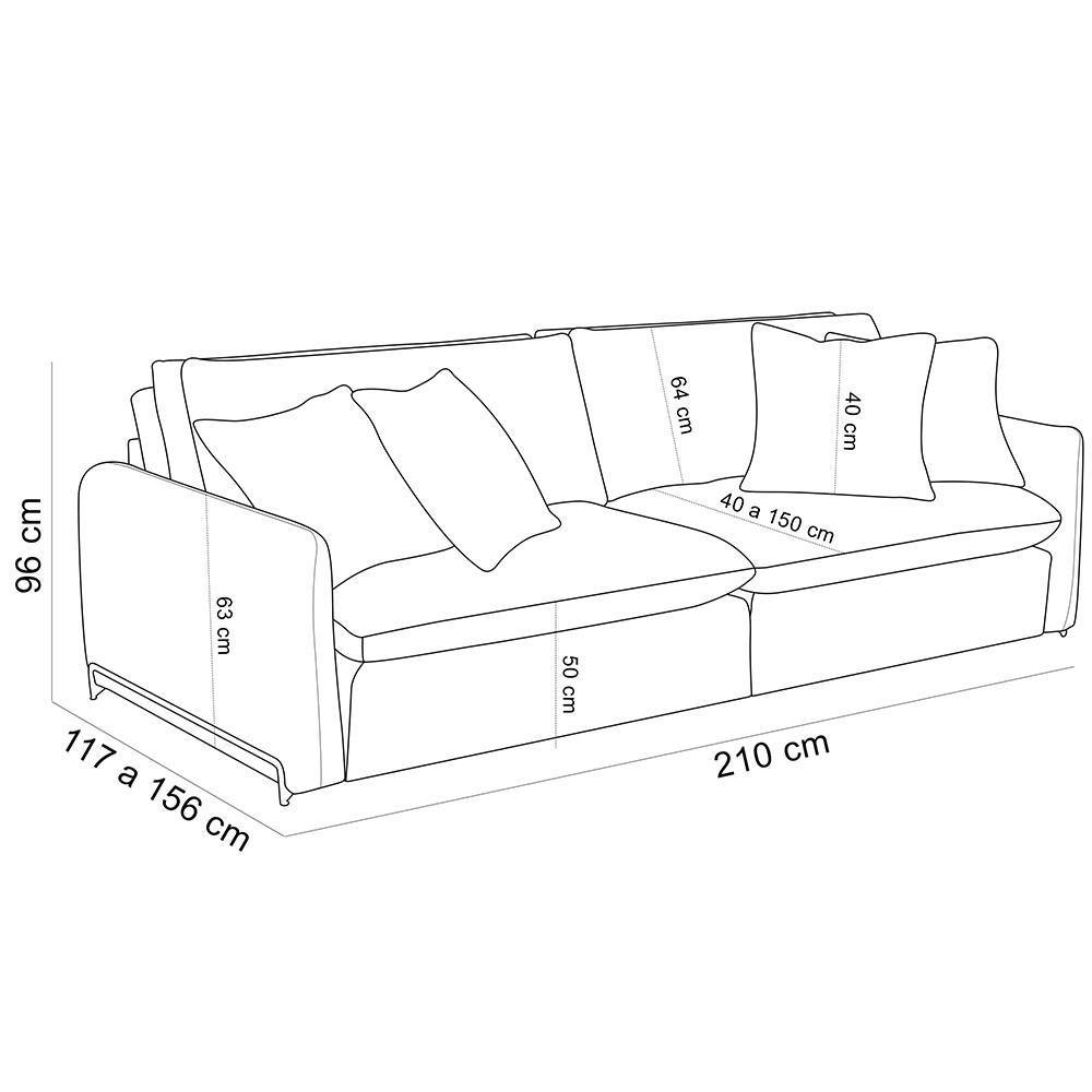 Sofá Cama Retrátil Para Sala De Estar 3 Lugares 210cm Lee T03 Linho Cinza Urano - Lyam DecorTer uma sala de estar moderna e funcional nunca foi tão fácil. Com o Sofá Cama Retrátil 210cm Lee, da Lyam Decor, os momentos de descanso e entretenimento ganharão um sentido.Seja como sofá retrátil para curtir séries ou filmes em família, seja como sofá cama para acomodar as visitas, o sofá Lee, além de moderno, é muito versátil, pois se adapta as suas necessidades de tanto de conforto quanto de estilo, pois a camada Pillow top com espuma de alta densidade e molas ensacadas garante um sentar suave, enquanto os pés de ferro adicionam um toque industrial ao design. Viu só, um sofá completo para tudo o que você precisa. Adicione ao seu carrinho e eleve o padrão do seu ambiente. Dimensões do Sofá (L x A x P) 210 cm x 96 cm x 117 cmMedidas Internas Largura x Altura do braço: 15 x 63 cm Altura do chão ao assento: 50 cm Altura do encosto: 64 cm Altura das almofadas: 40 cm Profundidade do sentar fechado: 40 cm Profundidade do sentar aberto: 105 cm Profundidade do assento fechado: 76 cm Profundidade do assento aberto: 150 cm Profundidade total aberto: 156 cm Altura dos pés: 4 cmCaracterísticas: Estrutura fabricada com madeira de reflorestamento de eucalipto tratada. Revestimento em Linho de alta qualidade na tonalidade Cinza. Percintas elásticas para maior sustentação, durabilidade e resistência. Assento com Pillow top com extensa camada de espuma D-30 e molas ensacadas para absorção adequada de pressão e efeito molejo com suavidade. Assento quando aberto totalmente pode ser aproveitado como sofá-cama. Acompanha almofadas decorativas. Pés em aço na cor Preto. Suporta até 360 kg.- Por se tratar de estofado as medidas podem ter uma pequena variação de até 3 cm. - A tonalidade do produto real poderá ter ligeira variação devido o lote de tecidos. - A limpeza deve ser feita com pano levemente umedecido em água limpa, sem esfregar, não utilizar produtos abrasivos, desengordurantes, álcool ou solvente.Observações importantes: - Produto para uso residencial em ambiente interno, não devendo ficar exposto diretamente ao sol, calor e umidade excessivos. - Pode haver alguma diferença de tonalidade entre a imagem e o produto real, por conta do tratamento de imagens e a calibração de cores do seu monitor. - As imagens são meramente ilustrativas, não acompanham objetos de decoração e eletrônicos. - Ao receber a mercadoria, o cliente deve verificar as condições da embalagem, caso haja alguma não assine o de . - Montagem, desmontagem e outras instalações serão de responsabilidade do cliente. Não nos responsabilizamos, no ato da , por subir escadas/elevadores ou pelo por guincho em apartamentos. Eventuais despesas são de responsabilidade do comprador. - Confira as dimensões do produto e certifique-se de que passará normalmente por supostos elevadores, portas, escadas e/ou corredores de sua residência. Altura: 96 cm | Color: Cinza Urano | ColorFamily: Cinza Urano | ColorSimple: Cinza Urano | ColorSupplier: Cinza Urano | Cor: Cinza Urano | Cor dos pés: Preto | Densidade da espuma do assento: D-30 | Desenho do tecido: Liso | Estilo: Moderno | Fabricante: Lyam Decor | Formato do sofá: Linear | Largura: 210 cm | Linha: Sala de Estar | Material: Madeira de Eucalipto | Material de enchimento do encosto: Espuma | Material do estofamento: Linho | MaterialFamily: Madeira de Eucalipto | Mecanismo de abertura do produto: Manual | Model: Lee | Orientação do Sofá: Linear | OriginCountry: | OriginState: PR | Peso: 60 Kg | Peso máximo suportado: 360 kg | ProductContents: 01 Sofá | ProductHeight: 96 cm | ProductInstructions: Produto para uso em ambiente interno, nao devendo ficar exposto ao sol, calor e umidade excessivos. | ProductLength: 117 cm | ProductWarranty: 90 dias após o do produto | ProductWeight: 60 kg | ProductWidth: 210 cm | Profundidade: 117 cm | Quantidade de Caixas de embalagem: 2 | Requer montagem: Não | SizeDescription: Altura: 96 cm x Largura: 210 cm x Profundidade: 117 cm | SupplierSimpleName: Sofá Cama Retrátil Para Sala de Estar 3 Lugares 210cm Lee T03 Linho Cinza Urano - Lyam Decor | Tipo de produto: Sofá | Unidades por kit: 1