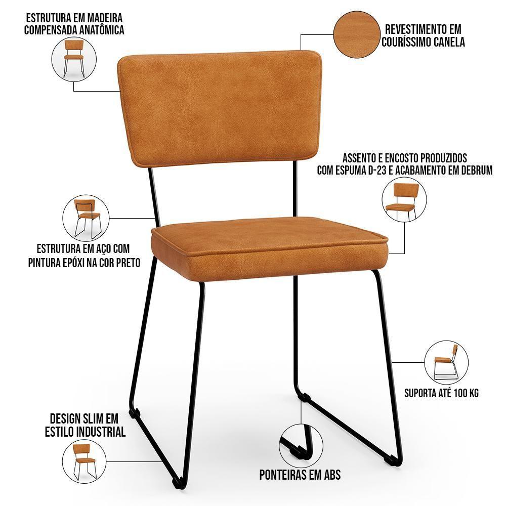 Kit 08 Cadeiras Decorativa Estofada Para Sala Base Em Aço Allana L02 Couríssimo Canela - Lyam DecorO espetáculo que é o Kit 08 Cadeiras Decorativa Estofada Para Sala De Jantar Base Em Aço Allana L02 da Lyam Decor, vem para agregar ainda mais valor na decoração da sua casa. Sua estrutura em aço remete-nos ao estilo industrial que surgiu em Nova York no século XX, já o assento e encosto estofados trazem equilíbrio e conforto criando a combinação perfeita para o ambiente. Podendo ser disposta em salas de jantar e estar, cozinha, espaço gourmet, dentre outras opções, ela se destaca com muita elegância e presença. Conta com materiais de máxima qualidade e está sempre pronta para recepcionar família e amigos de forma agradável. Você e seu lar merecem, aproveite!!Dimensões da Cadeira (L x A x P) 45 x 76 x 55 cmMedidas Internas: Altura do Assento ao chão: 45 cm Largura do assento: 40 cm Profundidade do assento: 39 cm Altura do assento: 06 cm Altura do encosto: 23 cm Largura do encosto: 39 cm Altura do assento ao encosto: 37 cm Largura traseira dos pés: 37 cmCaracterísticas: Estrutura em madeira compensada anatômica. Estrutura de aço redondo maciço 3/8 polegadas, com ponteira antiderrapante em abs. Pintura eletrostática epóxi de alta resistência à riscos e umidade, na cor preto. Assento e encosto com espuma D-23 e acabamento em Debrum. Revestimento em Couríssimo na cor Canela de alta qualidade.- Por se tratar de estofado as medidas podem ter uma pequena variação de até 3 cm. - A tonalidade do produto real poderá ter ligeira variação devido o lote de tecidos.Observações importantes: - Produto para uso residencial em ambiente interno, não devendo ficar exposto diretamente ao sol, calor e umidade excessivos. - Pode haver alguma diferença de tonalidade entre a imagem e o produto real, por conta do tratamento de imagens e a calibração de cores do seu monitor. - As imagens são meramente ilustrativas, não acompanham objetos de decoração e eletrônicos. - Ao receber a mercadoria, o cliente deve verificar as condições da embalagem, caso haja alguma não assine o de . - Montagem, desmontagem e outras instalações serão de responsabilidade do cliente. Não nos responsabilizamos, no ato da , por subir escadas/elevadores ou pelo por guincho em apartamentos. Eventuais despesas são de responsabilidade do comprador. - Confira as dimensões do produto e certifique-se de que passará normalmente por supostos elevadores, portas, escadas e/ou corredores de sua residência. Altura da cadeira: 76 cm | Altura do assento a partir do solo: 45 cm | Color: Marrom | ColorFamily: Marrom | ColorSimple: Marrom | ColorSupplier: Canela | Cor: Canela | Cor da estrutura da cadeira: Preto | Cor do assento: Canela | Cor do estofamento: Canela | Desenho do tecido: Couríssimo | É cadeira de balanço: NA | É dobrável: Não | É empilhável: Não | Espessura do assento: 6 cm | Fabricante: Lyam Decor | Firmeza: Firme | Largura da cadeira: 45 cm | Largura do assento: 52 cm | Material: Aço, Couríssimo | Material do estofamento: Couríssimo | MaterialFamily: Aço, Tecido | Model: Allana | OriginCountry: | OriginState: PR | Peso máximo suportado: 120 kg | ProductContents: 08 Cadeiras | ProductHeight: 76 cm | ProductInstructions: Produto para uso em ambiente interno, nao devendo ficar exposto ao sol, calor e umidade excessivos. | ProductLength: 55 cm | ProductWarranty: 90 dias após o do produto | ProductWeight: 64 kg | ProductWidth: 298 cm | Profundidade da cadeira: 55 cm | Profundidade do assento: 39 cm | Requer montagem: Não | SizeDescription: Altura: 76 cm x Largura: 298 cm x Profundidade: 55 cm | SupplierSimpleName: Kit 08 Cadeiras Decorativa Estofada Para Sala Base Em Aço Allana L02 Couríssimo Canela - Lyam Decor | Tempo de montagem: na