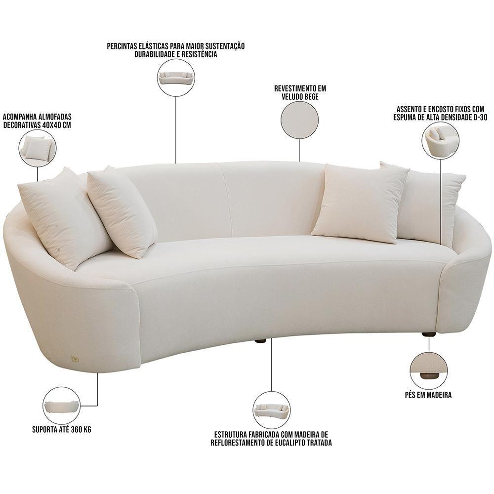 Sofá 4 Lugares Orgânico Sala De Estar Living 270cm Adam T03 Veludo Bege - Lyam Decor