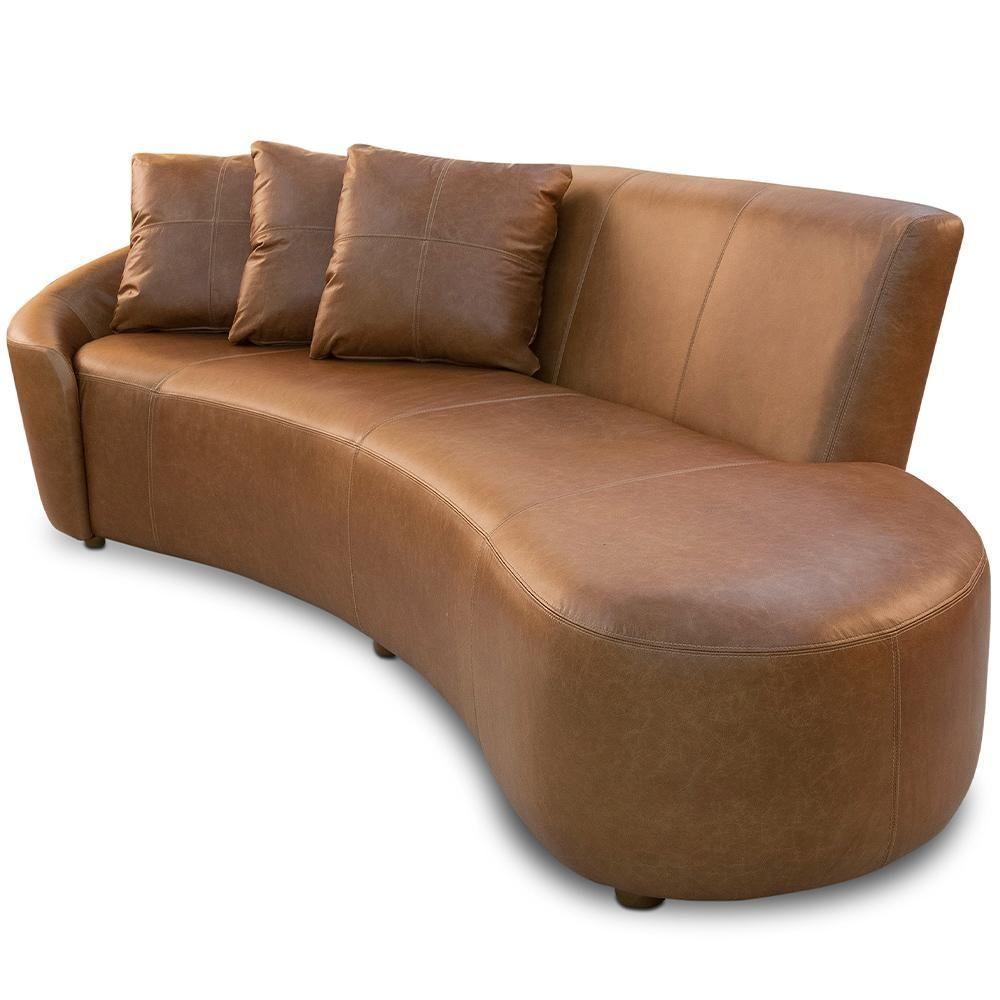 Sofá 3 Lugares Com Puff Orgânico Sala Living 250cm Adam T03 Couro Cristal Marrom - Lyam Decor