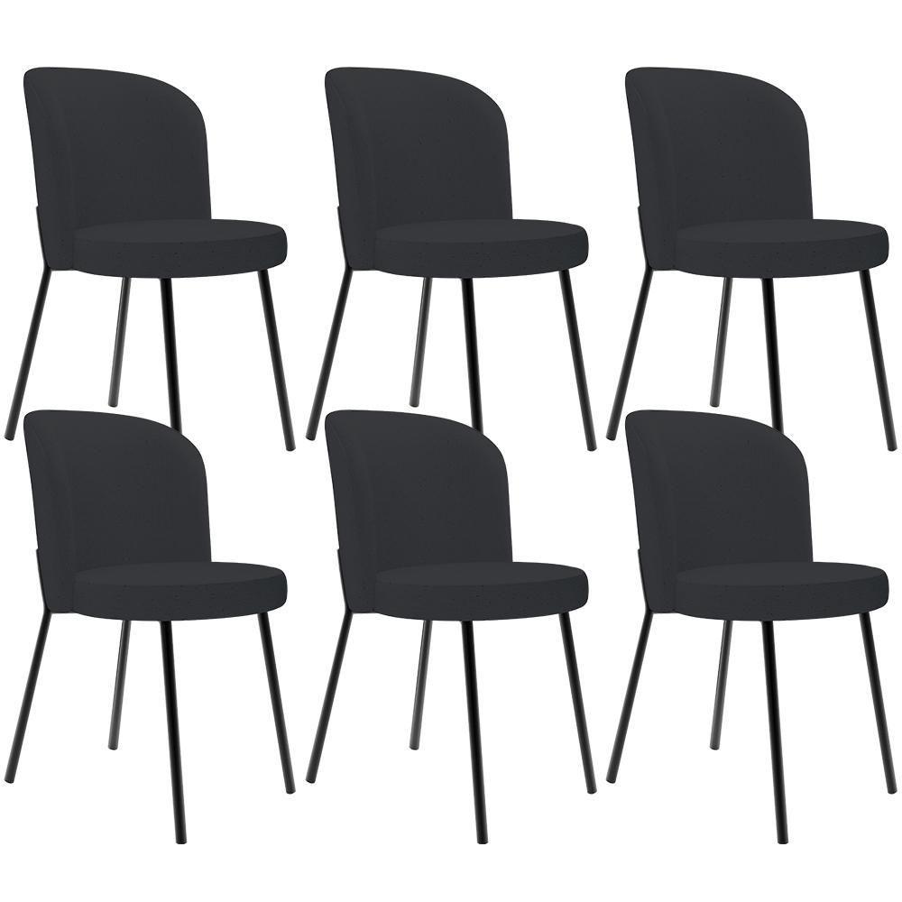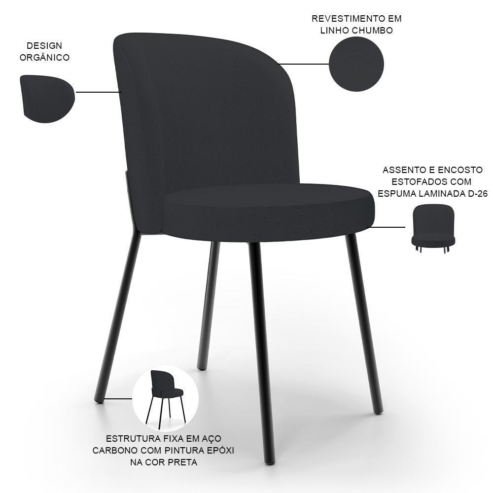 Kit 6 Cadeiras Sala De Jantar Estofada Gavi L02 Linho Chumbo - Lyam Decor