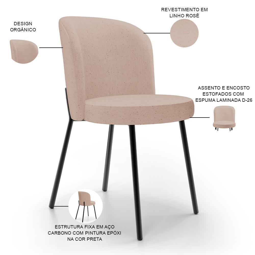 Kit 5 Cadeiras Sala De Jantar Estofada Gavi L02 Linho Rosê - Lyam Decor