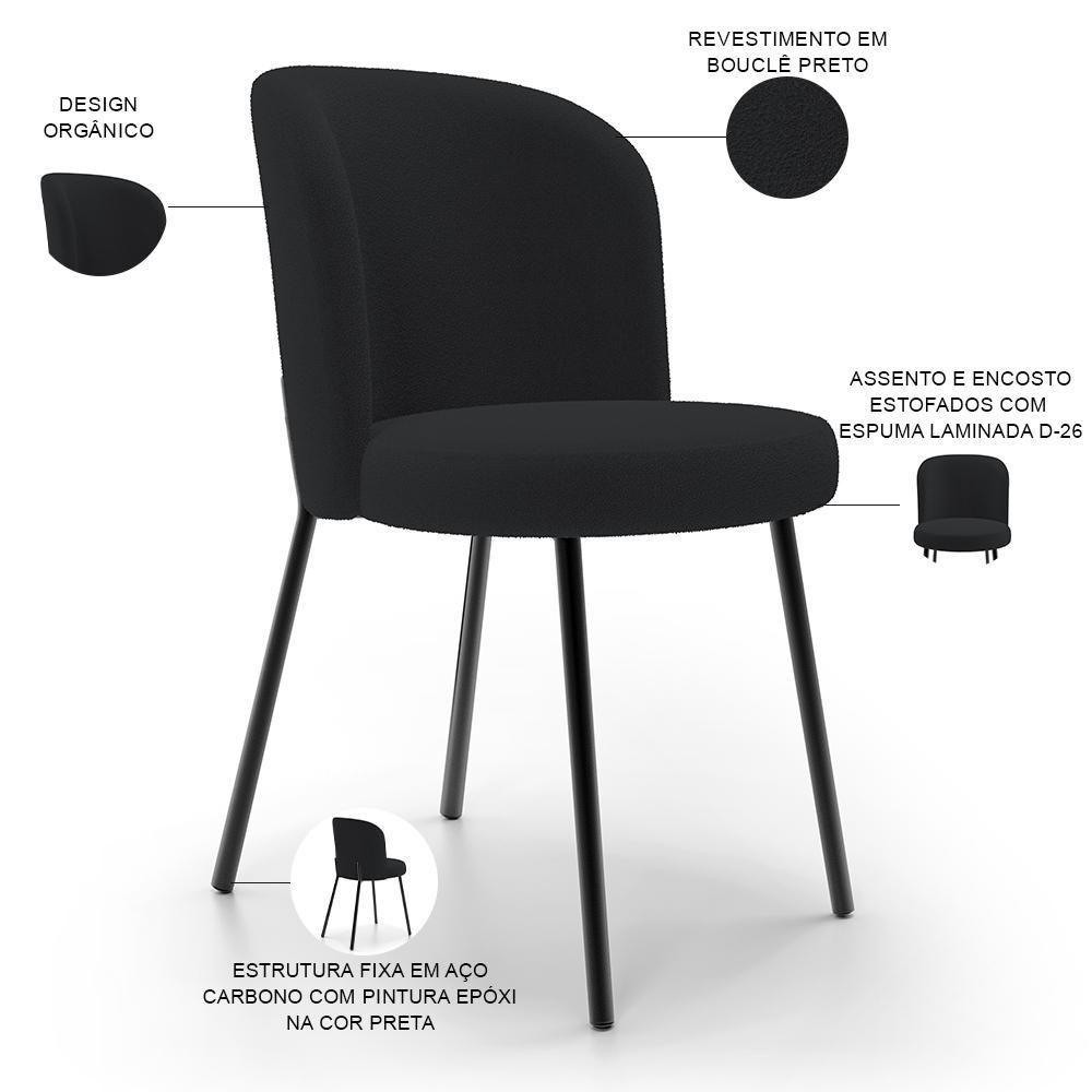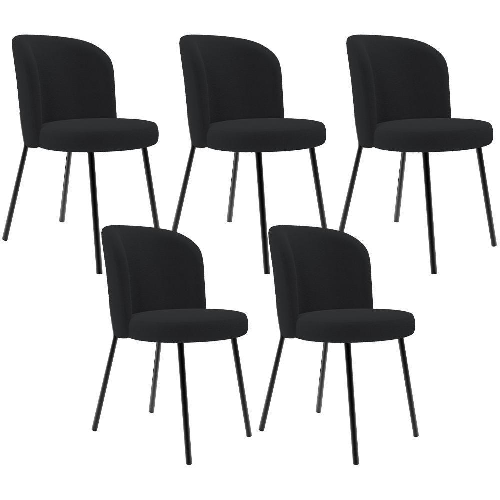 Kit 5 Cadeiras Sala De Jantar Estofada Gavi L02 Bouclê Preto - Lyam Decor