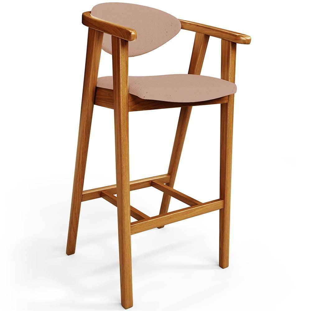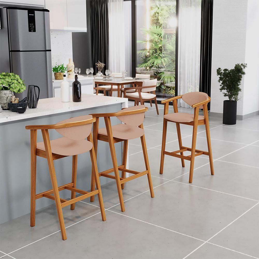 Kit 06 Banquetas Alta Para Cozinha Bancada Bar Sala De Jantar Fixa Cecília L02 Linho Rosê - Lyam