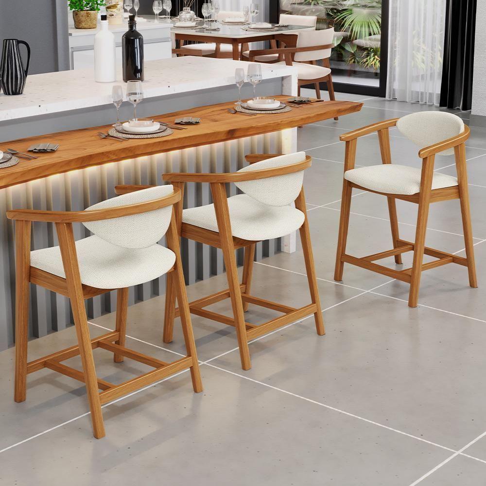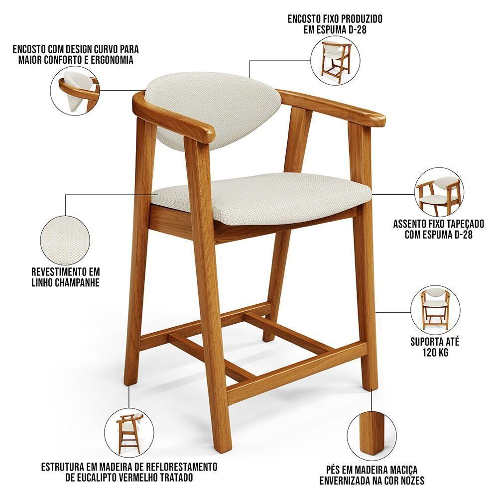 Kit 06 Banquetas Baixa Cozinha Sala De Jantar Bancada Cecília L02 Linho Champanhe - Lyam Decor
