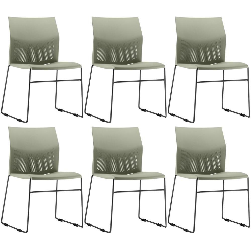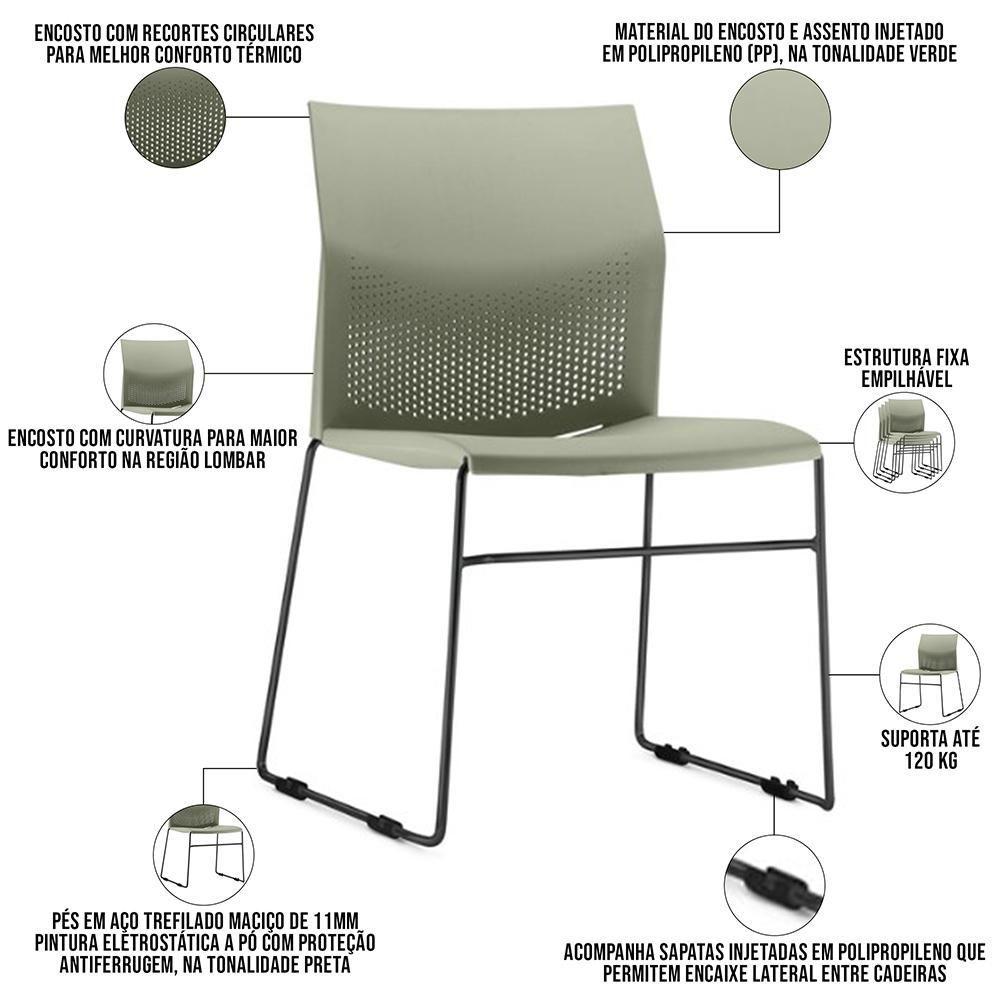 Kit 06 Cadeiras Empilhável Fixa Link F02 Base Aço Preta Verde - Lyam Decor