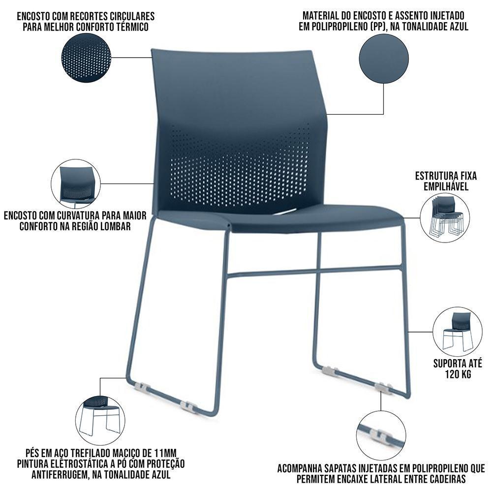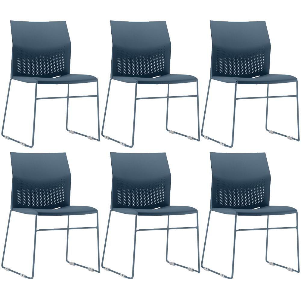 Kit 06 Cadeiras Empilhável Fixa Link F02 Base Aço Azul - Lyam Decor
