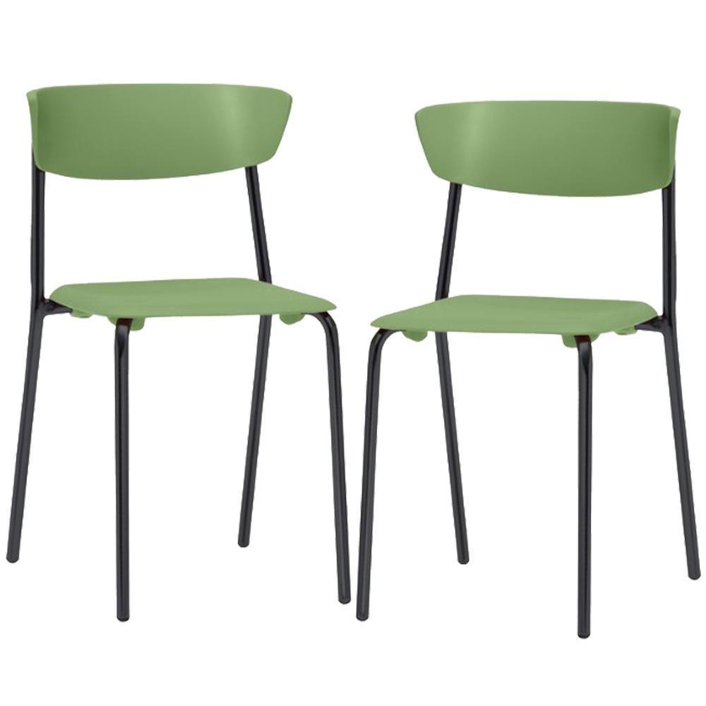 Kit 02 Cadeiras Empilhável Fixa Atom F02 Base Aço Preta Verde - Lyam Decor