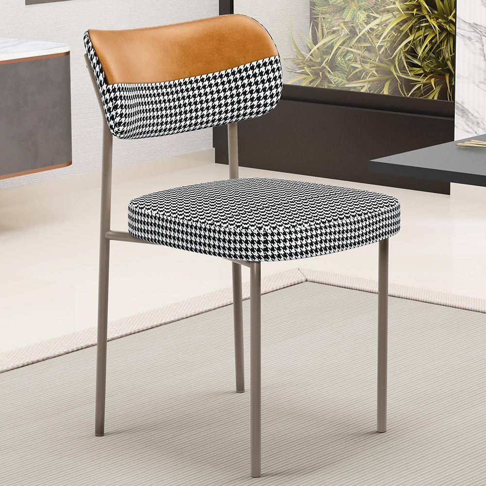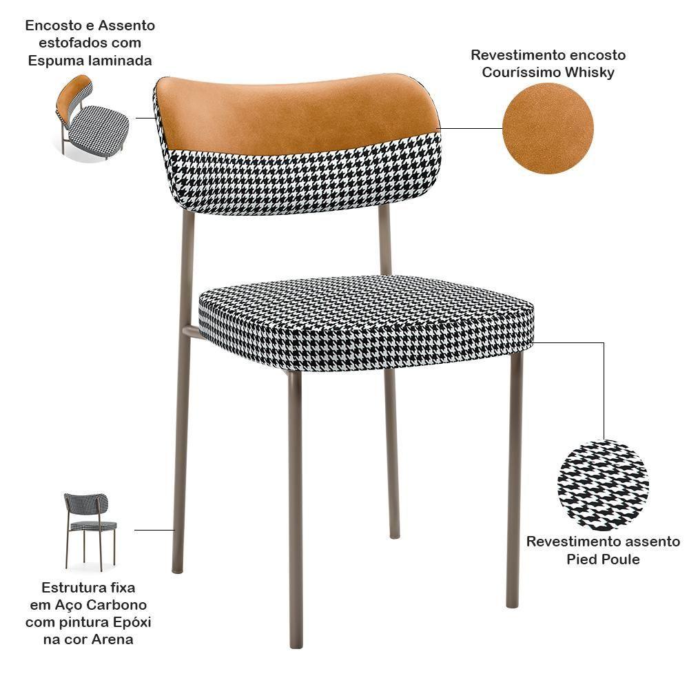Kit 08 Cadeiras Decorativa Para Sala De Jantar Melina Base Arena L02 Faixa Couríssimo Whisky Pied Poule - Lyam DecorCaso você esteja buscando conforto, realce e praticidade, o Kit 08 Cadeiras Estofadas Melina Arena vai superar todas as suas expectativas. Garante muita comodidade e otimiza o espaço, além de harmonizar com seu estilo decorativo facilmente, podendo ser utilizada em salas de estar, jantar e cozinha, além de dar um toque especial em sua decoração. Sua proposta de design suavizará seu ambiente sem passar despercebida oferecendo mais leveza e receptividade ao seu lar. Estruturada em aço carbono, contrasta lindamente com o encosto e assento estofados que são extremamente confortáveis, resistentes e aconchegantes. Você merece esta incrível combinação em sua casa, adquira já a sua! Dimensões da Cadeira (L x A x P) 49 x 77 x 54 cmMedidas Internas Altura do encosto 22 cm Largura do encosto 49 cm Altura do assento ao Encosto 34 cm Altura do assento 6,5 cm Largura do assento 44 cm Profundidade do assento 45 cm Altura do Assento ao chão 49 cmCaracterísticas: Encosto e assento estofados com espuma laminada; Estrutura fixa em aço carbono com pintura epóxi na cor Arena; Revestimento em Couríssimo Whisky e Pied Poule; Suporta até 120 kg. - Por se tratar de estofado as medidas podem ter uma pequena variação de até 3 cm.- A tonalidade do produto real poderá ter ligeira variação devido o lote de tecidos.- A limpeza deve ser feita com pano levemente umedecido em água limpa, sem esfregar, não utilizar produtos abrasivos, desengordurantes, álcool ou solvente.Observações importantes:- Produto para uso residencial em ambiente interno, não devendo ficar exposto diretamente ao sol, calor e umidade excessivos.- Pode haver alguma diferença de tonalidade entre a imagem e o produto real, por conta do tratamento de imagens e a calibração de cores do seu monitor.- As imagens são meramente ilustrativas, não acompanham objetos de decoração e eletrônicos.- Ao receber a mercadoria, o cliente deve verificar as condições da embalagem, caso haja alguma não assine o de .- Montagem, desmontagem e outras instalações serão de responsabilidade do cliente. Não nos responsabilizamos, no ato da , por subir escadas/elevadores ou pelo por guincho em apartamentos. Eventuais despesas são de responsabilidade do comprador.- Confira as dimensões do produto e certifique-se de que passará normalmente por supostos elevadores, portas, escadas e/ou corredores de sua residência. cor: marrom