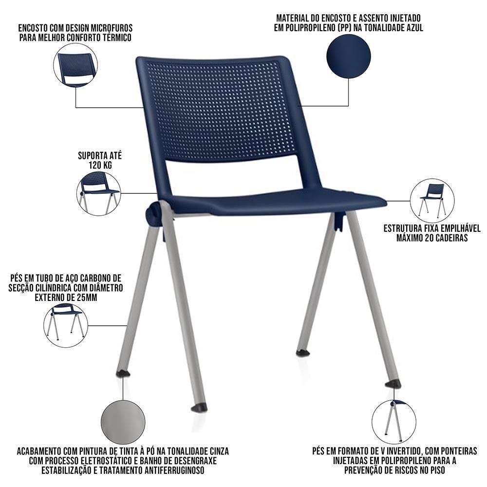 Cadeira Empilhável Fixa Lift F02 Base Aço Cinza Azul - Lyam Decor