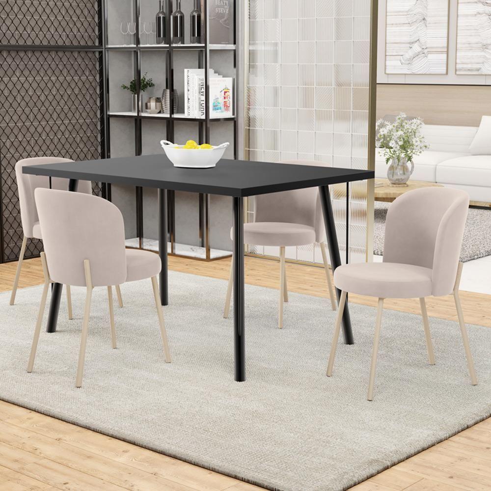 Kit 5 Cadeiras Sala De Jantar Estofada Gavi Arena L02 Suede Bege Lyam Decor