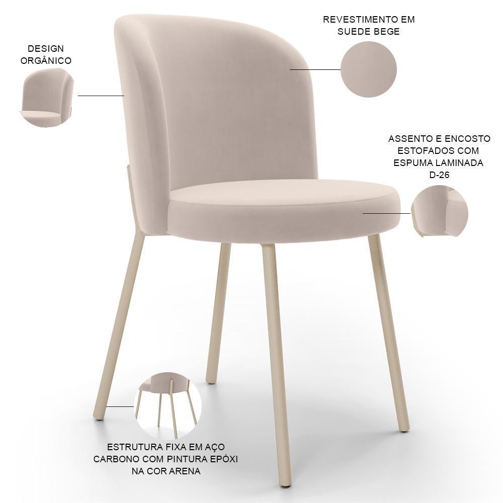 Kit 6 Cadeiras Sala De Jantar Estofada Gavi Arena L02 Suede Bege Lyam Decor
