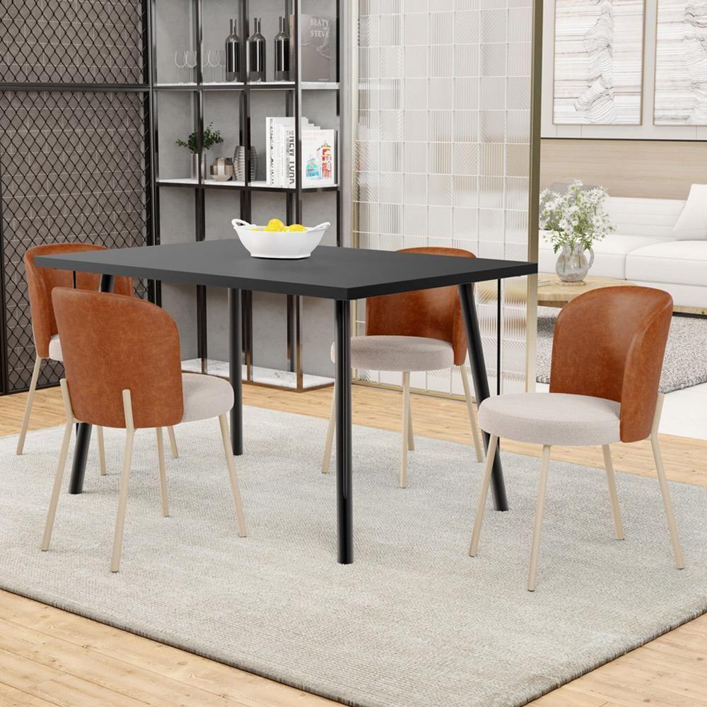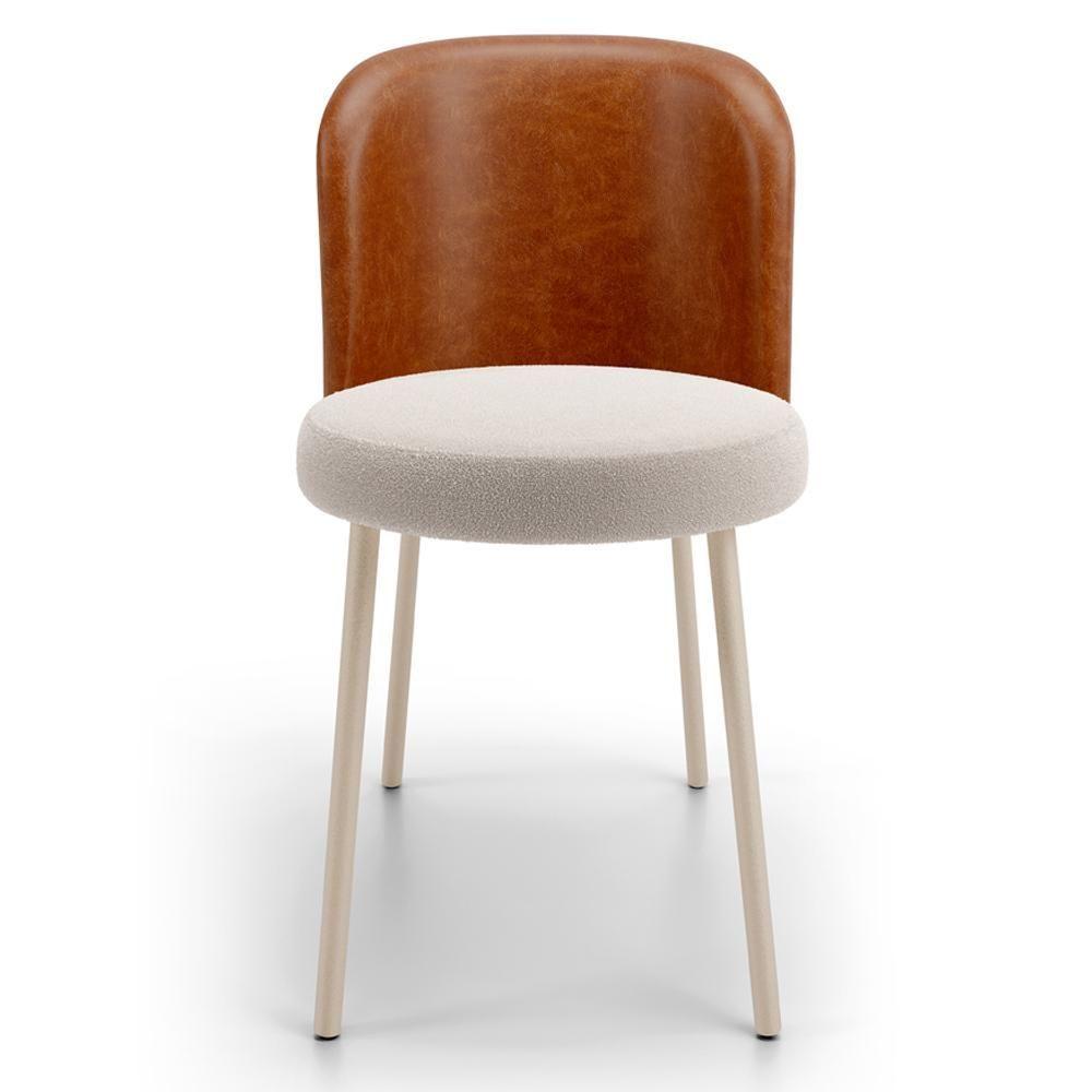 Kit 5 Cadeiras Sala De Jantar Estofada Gavi Arena L02 Couríssimo Camel Bouclê Creme Lyam Decor