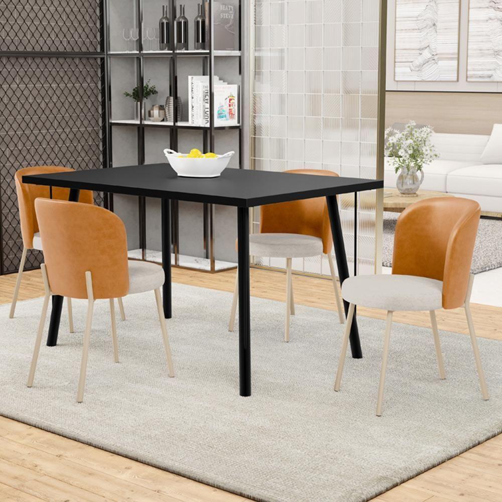 Kit 5 Cadeiras Sala De Jantar Estofada Gavi Arena L02 Couríssimo Whisky Linho Cru - Lyam DecorQue tal transformar a sua sala de jantar ou cozinha em um ambiente mais confortável e convidativo com o Kit de 5 Cadeiras Estofada Gavi, da Lyam Decor. Com esse conjunto de cadeiras a sua casa nunca mais será a mesma. Com design contemporâneo, essa cadeira estilo industrial se destaca não somente por ser uma peça de mobiliário versátil, já que pode ser aproveitada na cozinha, sala de jantar, área gourmet e até mesmo salão de festas; como também recebe atenção pelo conforto que oferece, graças ao assento e encosto revestidos com espuma laminada D-26, de modo que você desfrute de momentos incríveis durante as refeições. Já os pés em aço carbono conferem resistência e durabilidade, garantindo que você desfrute dessa cadeira por muito tempo. Em outras palavras, a Cadeira para Sala de Jantar Cozinha Estofada Gavi é a escolha perfeita para quem valoriza o estilo e o conforto em seus momentos especiais à mesa. Aproveite e garanta já a sua! Dimensões do produto (L x A x P) 44 x 80 x 53 cmMedidas Internas: Altura do chão ao assento: 46 cm Diâmetro do assento:42 cm Altura do Encosto: 41 cm Largura do Encosto: 45cm.Características: Estrutura fixa em Aço Carbono com pintura epóxi na cor Arena. Revestimento de alta qualidade Couríssimo na cor Whisky e Linho na cor Cru. Assento e encosto com espuma laminada D-26. Suporta até 120 kg cada. Produto entregue montado. - Por se tratar de estofado as medidas podem ter uma pequena variação de até 3 cm. - A tonalidade do produto real poderá ter ligeira variação devido o lote de tecidos. - A limpeza deve ser feita com pano umedecido em água limpa, sem esfregar, não utilizar produtos abrasivos, desengordurantes, álcool ou solvente. Observações importantes: - Produto para uso residencial em ambiente interno, não devendo ficar exposto diretamente ao sol, calor e umidade excessivos. - Pode haver alguma diferença de tonalidade entre a imagem e o produto real, por conta do tratamento de imagens e a calibração de cores do seu monitor. - As imagens são meramente ilustrativas, não acompanham objetos de decoração e eletrônicos. - Ao receber a mercadoria, o cliente deve verificar as condições da embalagem, caso haja alguma não assine o comprovante de recebimento. - Montagem, desmontagem e outras instalações serão de responsabilidade do cliente. Não nos responsabilizamos, no ato da , por subir escadas/elevadores ou pelo transporte por guincho em apartamentos. Eventuais despesas são de responsabilidade do comprador. - Confira as dimensões do produto e certifique-se de que passará normalmente por supostos elevadores, portas, escadas e/ou corredores de sua residência. Altura da cadeira: 80 cm | Altura do assento a partir do solo: 46 cm | Color: Cru | ColorFamily: Cru | ColorSimple: Branco | ColorSupplier: Cru | Cor: CRU | Cor da estrutura da cadeira: Arena | Cor do assento: Cru | Cor do estofamento: Cru | Desenho do tecido: Liso | É cadeira de balanço: Não | É dobrável: Não | É empilhável: Não | Espessura do assento: na | Fabricante: Lyam Decor | Firmeza: Firmeza | Largura da cadeira: 44 cm | Largura do assento: 42 cm | Material: Estrutura em Aço carbono, Revestimento em Couríssimo, linho e espuma | Material do estofamento: Couríssimo, Linho e espuma | MaterialFamily: Aço carbono, Couro sintético, linho e espuma | Model: Gavi | OriginCountry: Nacional | OriginState: PR | Peso máximo suportado: 120 kg | ProductContents: 05 Cadeiras | ProductHeight: 81 cm | ProductInstructions: Produto para uso em ambiente interno, nao devendo ficar exposto ao sol, calor e umidade excessivos. | ProductLength: 108 cm | ProductWarranty: 90 dias após o recebimento do produto | ProductWeight: 25 kg | ProductWidth: 135 cm | Profundidade da cadeira: 53 cm | Profundidade do assento: 42 cm | Requer montagem: Não | SizeDescription: Altura: 81 cm x Largura: 135 cm x Profundidade: 108 cm | SupplierSimpleName: Kit 5 Cadeiras Sala de Jantar Estofada Gavi Arena L02 Couríssimo Whisky Linho Cru - Lyam Decor | Tempo de montagem: na