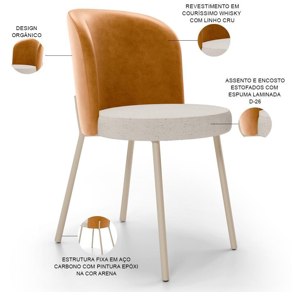 Kit 5 Cadeiras Sala De Jantar Estofada Gavi Arena L02 Couríssimo Whisky Linho Cru Lyam Decor