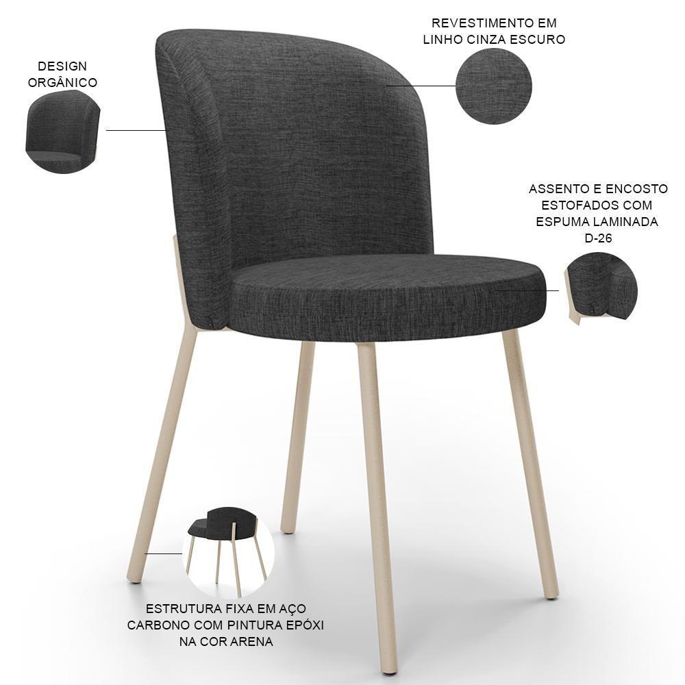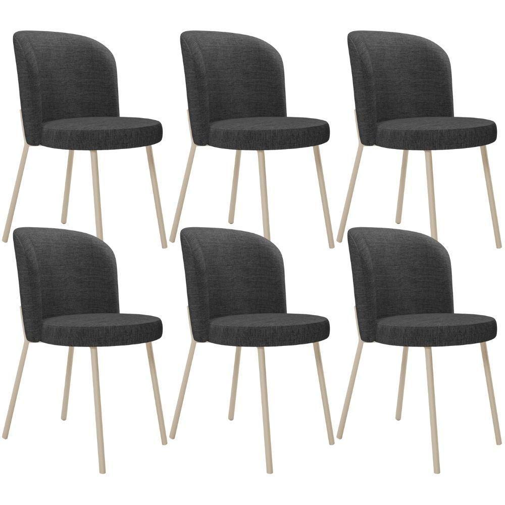Kit 6 Cadeiras Sala De Jantar Estofada Gavi Arena L02 Linho Cinza Escuro Lyam Decor