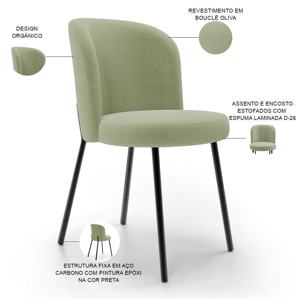 Kit 5 Cadeiras Sala De Jantar Estofada Gavi L02 Bouclê Oliva Lyam Decor