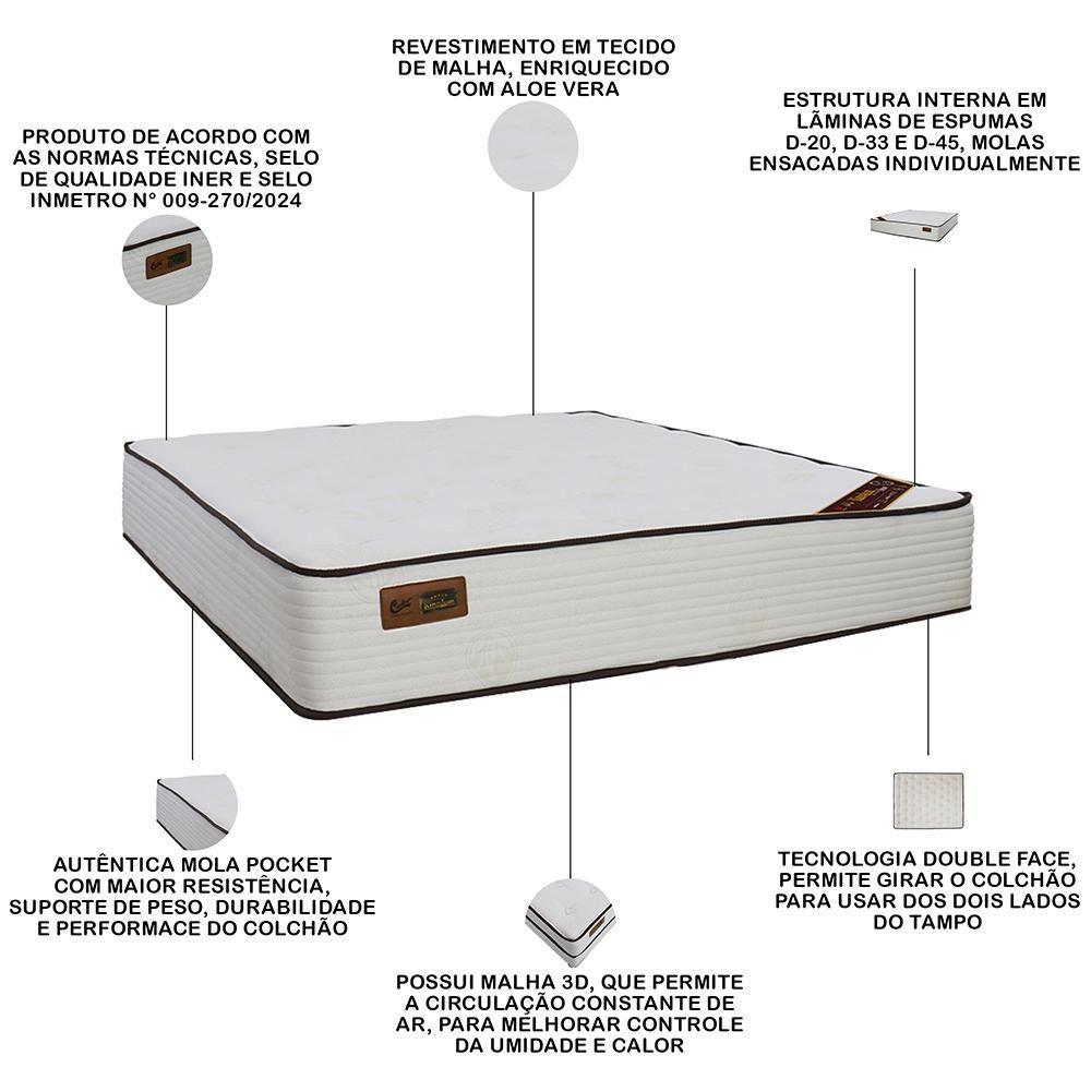 Colchão Queen Molas Pocket 158x198x32cm Double Face Kingdom New - Castor