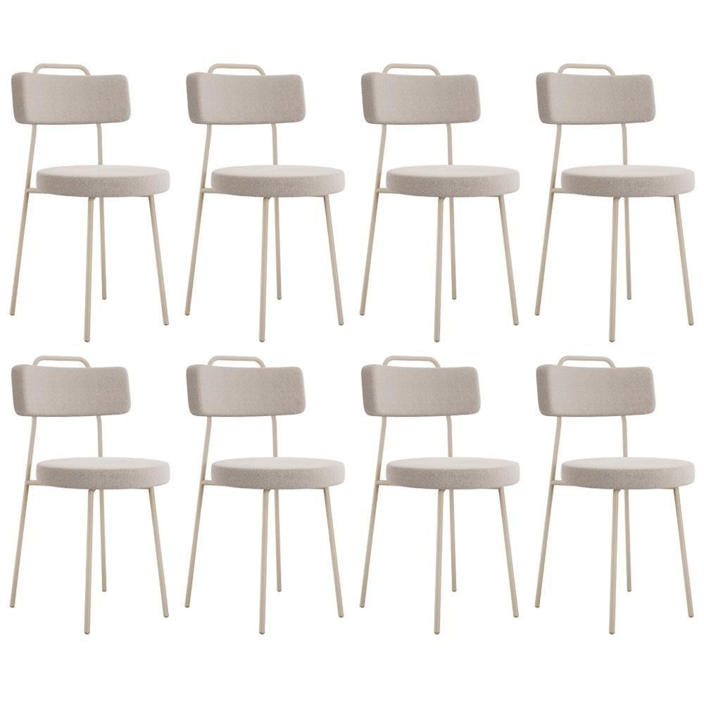 Kit 08 Cadeiras Decorativas Estofada Sala Jantar Barcelona Arena L02 Bouclê Creme - Lyam