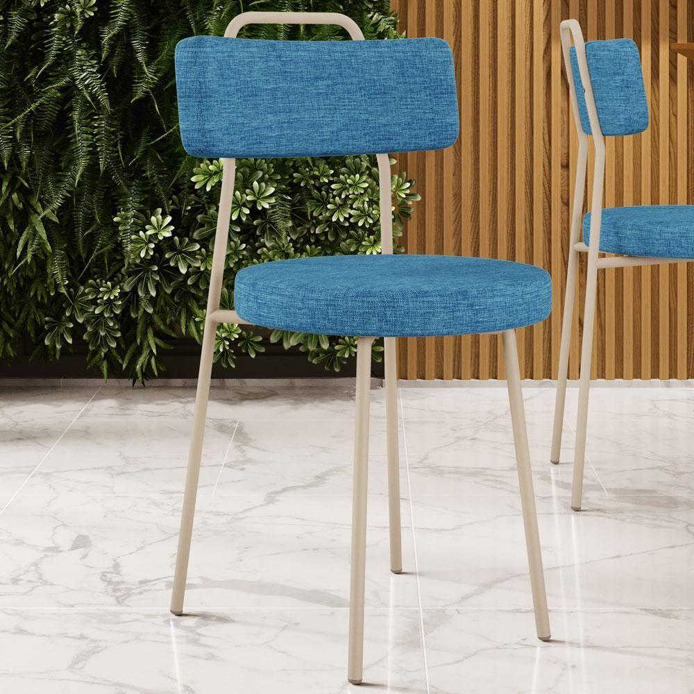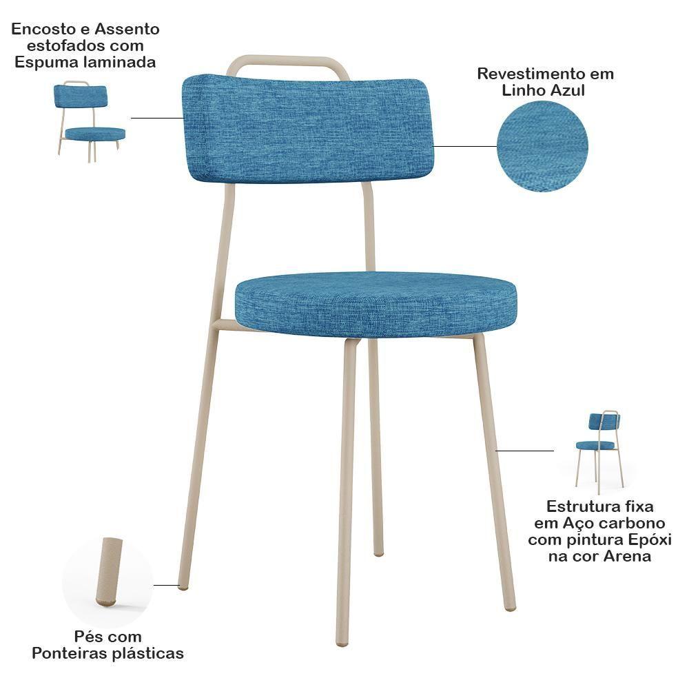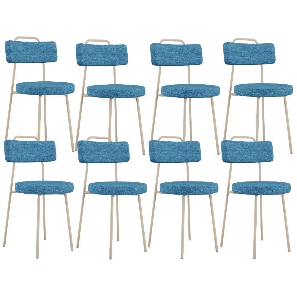 Kit 08 Cadeiras Decorativas Estofada Sala Jantar Barcelona Arena L02 Linho Azul - Lyam