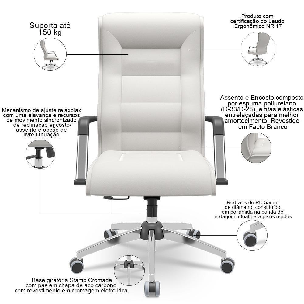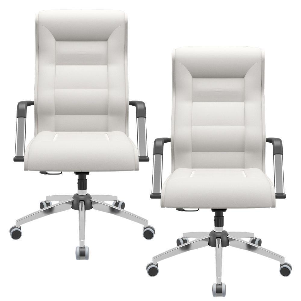 Kit 02 Cadeiras De Escritório Giratória Presidente Base Cromada Kirk P03 Facto Branco - Lyam Decor