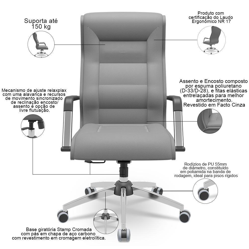 Kit 02 Cadeiras De Escritório Giratória Presidente Base Cromada Kirk P03 Facto Cinza - Lyam Decor