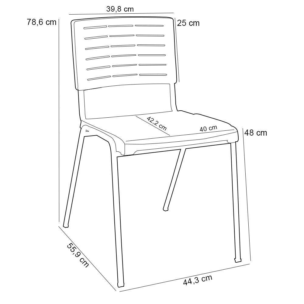 Cadeira Empilhável Fixa Escritório Multiuso Base Preta Kimi P03 Vermelho - Lyam DecorProcurando por uma cadeira versátil e moderna? A Cadeira Empilhável Kimi, da Lyam Decor, é a escolha perfeita! Com estrutura em aço tubular resistente e design clean, ela se adapta a diversos ambientes, desde escritório, área gourmet, restaurante até escolas e salão de festas.Além disso, design e funcionalidade se encontram, expressos no conforto térmico graças às aberturas longitudinais no encosto e assento, e na versatilidade de empilhar até dez unidades, de modo a facilitar o armazenamento e organização. Enfim, uma cadeira em polipropileno criada para transformar qualquer espaço com muito estilo. Aproveite e adicione agora mesmo ao seu carrinho! Dimensões da Cadeira (L x A x P) 44,3 x 78,6 x 55,9 cm Medidas Internas: Encosto (L x A): 39,8 x 25 cm Altura do chão ao assento: 48 cm Assento (L x P): 40 x 42,2 cm Características: Estrutura em tubos de aço de secção redonda com acabamento eletroestático epóxi em pó na cor Preto e ponteiras plásticas injetadas em polipropileno. Assento e encosto compostos por polipropileno injetado com acabamento texturizado na cor Vermelho. Aberturas longitudinais no assento e encosto para melhor transferência térmica. Empilhamento máximo de até 10 cadeiras. Peso máximo suportado 110 kg. Produto com certificação do Laudo Ergonômico NR 17 Observações importantes: - Produto para uso residencial em ambiente interno, não devendo ficar exposto diretamente ao sol, calor e umidade excessivos. - Pode haver alguma diferença de tonalidade entre a imagem e o produto real, por conta do tratamento de imagens e a calibração de cores do seu monitor. - As imagens são meramente ilustrativas, não acompanham objetos de decoração e eletrônicos. - Ao receber a mercadoria, o cliente deve verificar as condições da embalagem, caso haja alguma não assine o comprovante de recebimento e com nossa para orientações. - Montagem, desmontagem e outras instalações serão de responsabilidade do cliente. Não nos responsabilizamos, no ato da , por subir escadas/elevadores ou pelo transporte por guincho em apartamentos. Eventuais despesas são de responsabilidade do comprador. - Confira as dimensões do produto e certifique-se de que passará normalmente por supostos elevadores, portas, escadas e/ou corredores de sua residência. - Para mais informações, acesse nossa Central de Atendimento. Color: Vermelho | ColorFamily: Vermelho | ColorSimple: Vermelho | ColorSupplier: Vermelho | Com apoio de braços: Não | Com aro para pés: Não | Com rodas: Não | Cor: Vermelho | Formato de venda: Unitário | Materiais do aro para pés: na | Material: Termoplástico, Tubos de Aço | Material do estofamento: na | MaterialFamily: Polipropileno | Model: Kimi | Modelo: Kimi | Modelo detalhado: Kimi | OriginCountry: Brasil | OriginState: PR | ProductContents: 01 Cadeira | ProductHeight: 79 cm | ProductInstructions: Produto para uso em ambiente interno, nao devendo ficar exposto ao sol, calor e umidade excessivos. | ProductLength: 56 cm | ProductWarranty: 90 dias após o recebimento do produto | ProductWeight: 4 kg | ProductWidth: 44 cm | Requer montagem: Não | SizeDescription: Altura: 79 cm x Largura: 44 cm x Profundidade: 56 cm | SupplierSimpleName: Cadeira Empilhável Fixa Escritório Multiuso Base Preta Kimi P03 Vermelho - Lyam Decor | Tipo de cadeira de escritório: Cadeira Empilhável