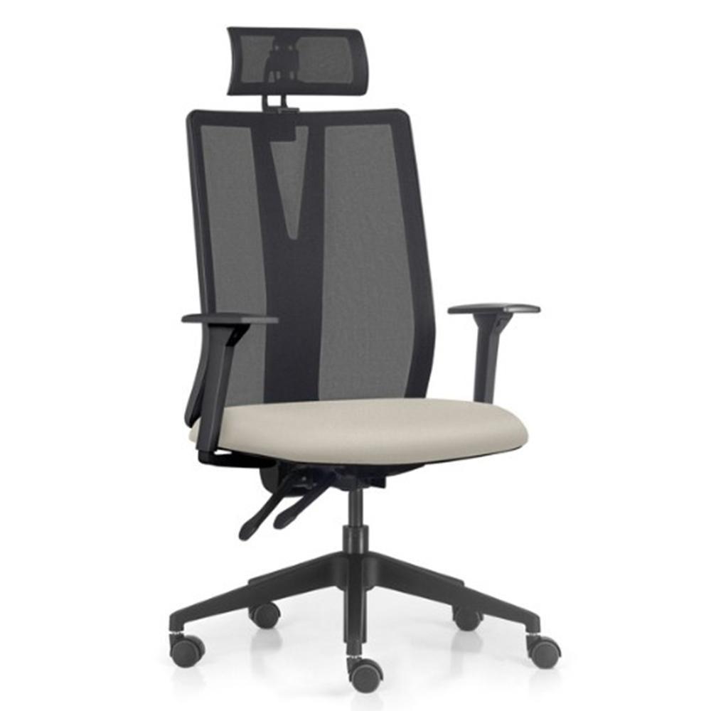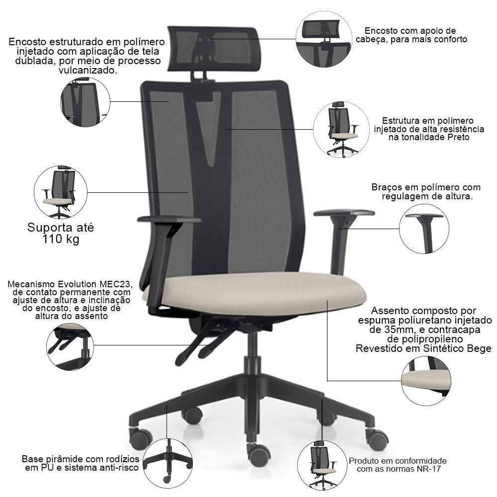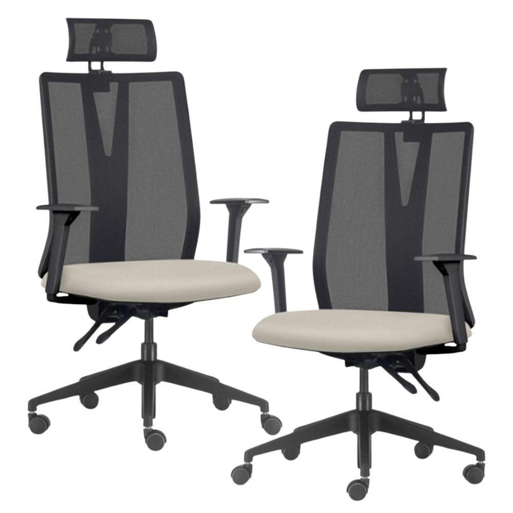 Kit 2 Cadeiras Escritório Giratória Presidente Flow F02 Base Preta Sintético Bege - Lyam Decor