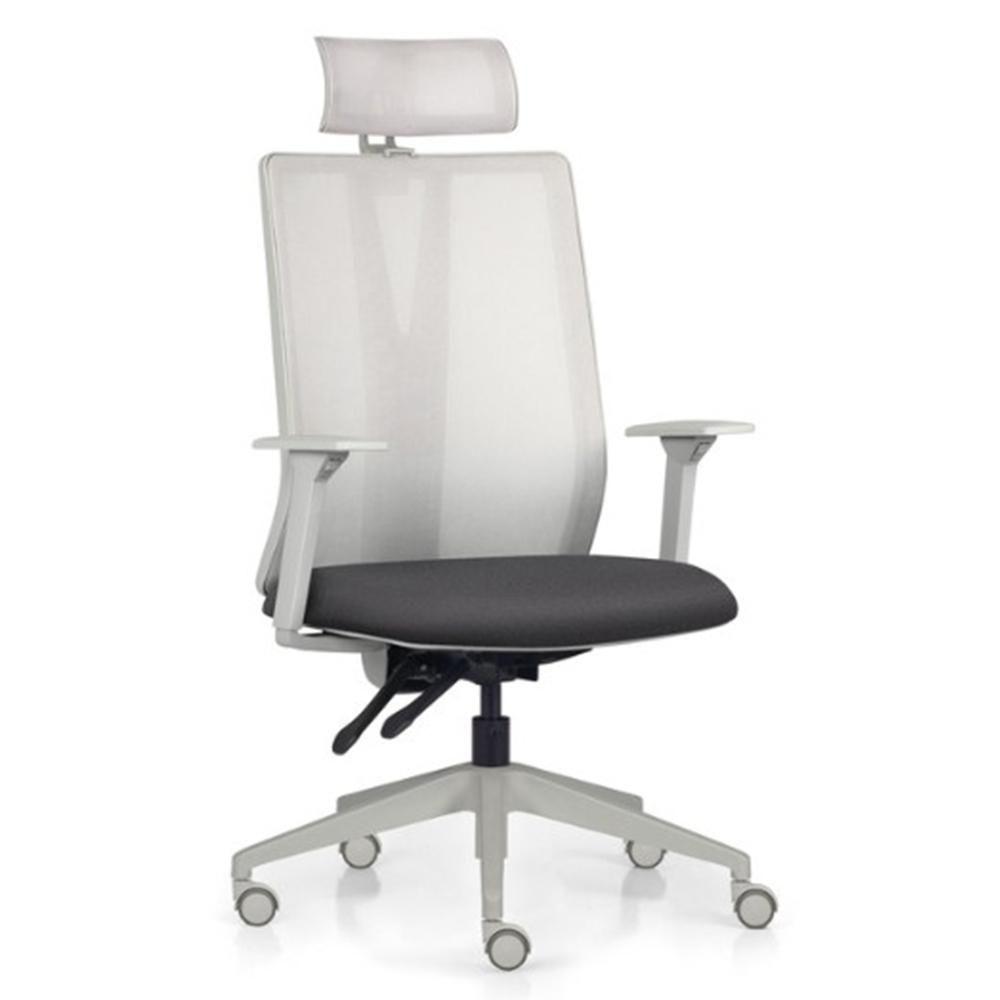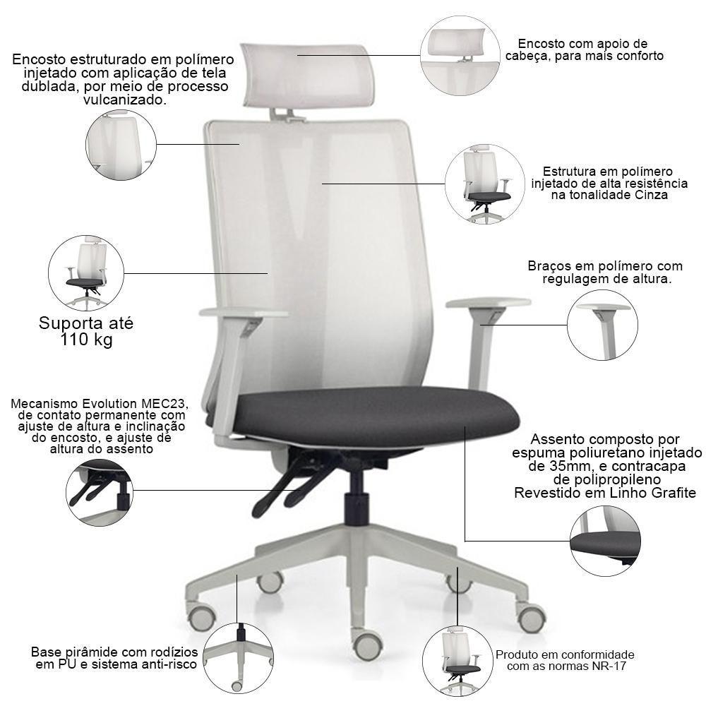 Kit 2 Cadeiras Escritório Giratória Presidente Flow F02 Base Cinza Linho Grafite - Lyam Decor