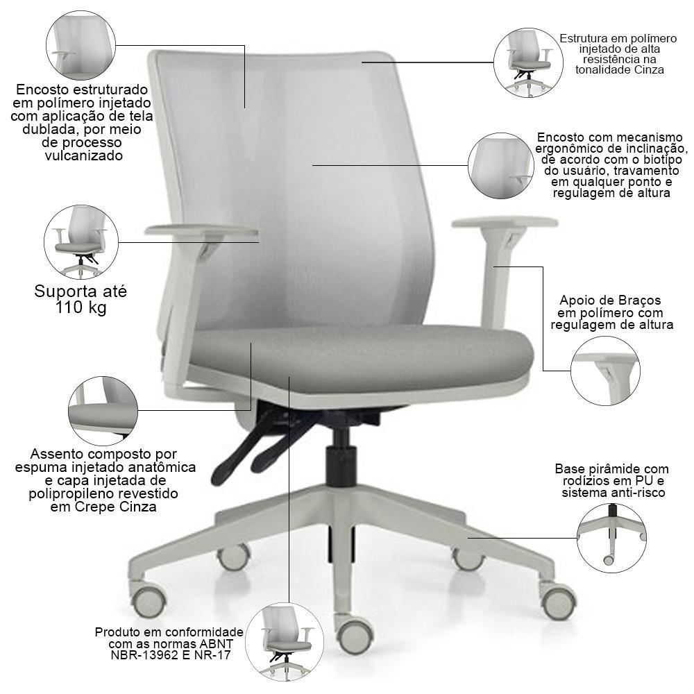 Cadeira De Escritório Giratória Diretor Flow F02 Base Cinza Crepe Cinza - Lyam Decor