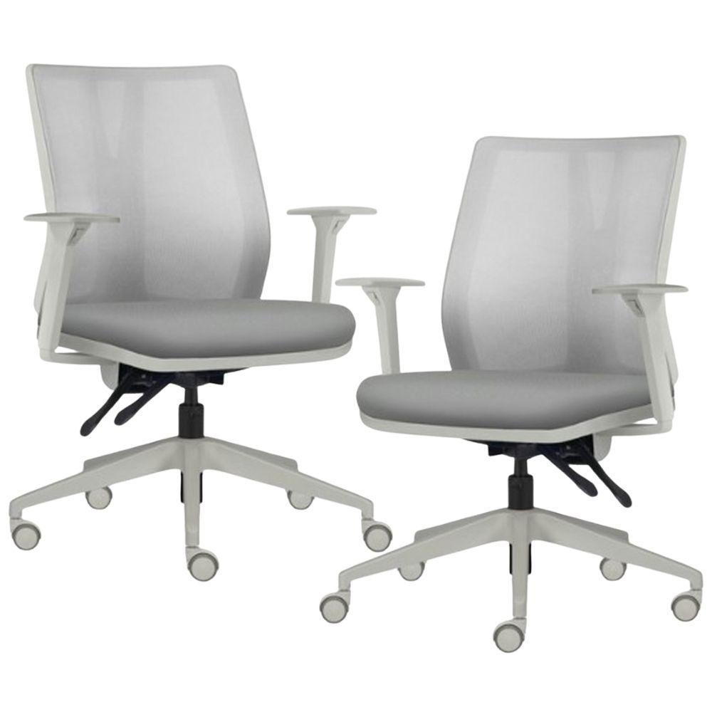 Kit 2 Cadeiras De Escritório Giratória Diretor Flow F02 Base Cinza Sintético Cinza - Lyam Decor
