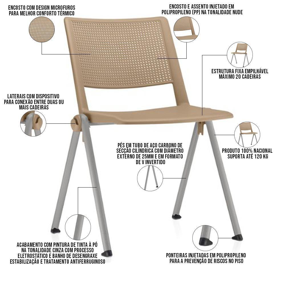 Cadeira Empilhável Fixa Lift F02 Base Aço Cinza Nude - Lyam Decor